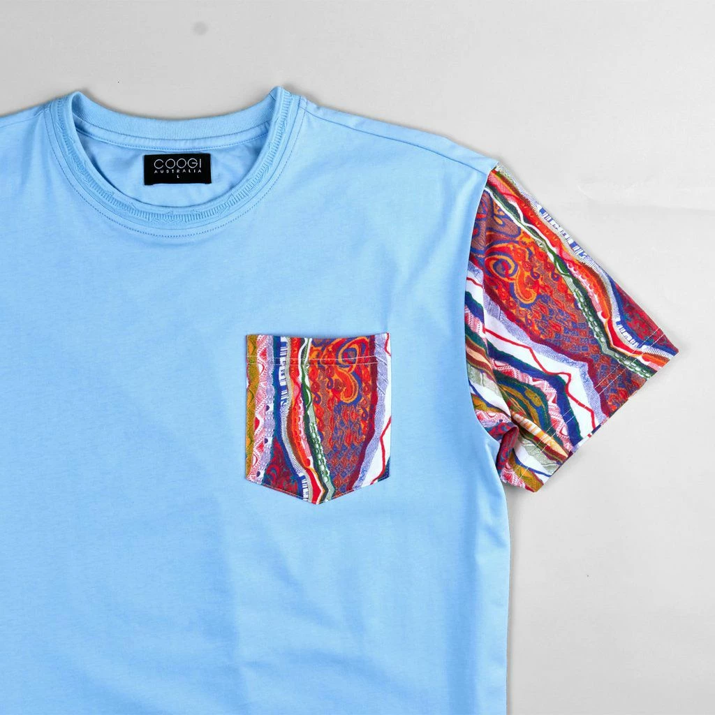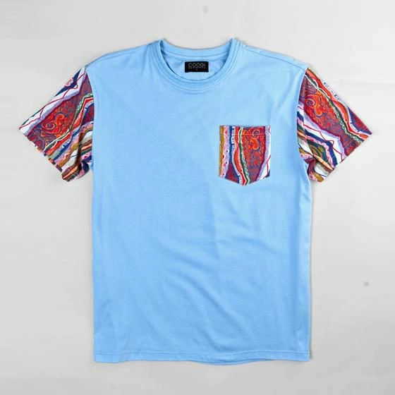 The COOGI OG Patchwork Tee is the latest addition to our Spring Collection.  The iconic COOGI Classic pattern is executed in a sublimated print on the sleeves and patch pocket.  Our tee is 100% premium mercerized cotton. Details include an authentic knit collar and a leather back patch, with a metal logo. This tee features a contemporary fit, not slim or oversized.