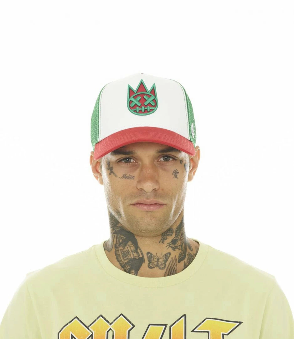 Cult of individuality (white/red/green trucker clean logo mesh back trucker)