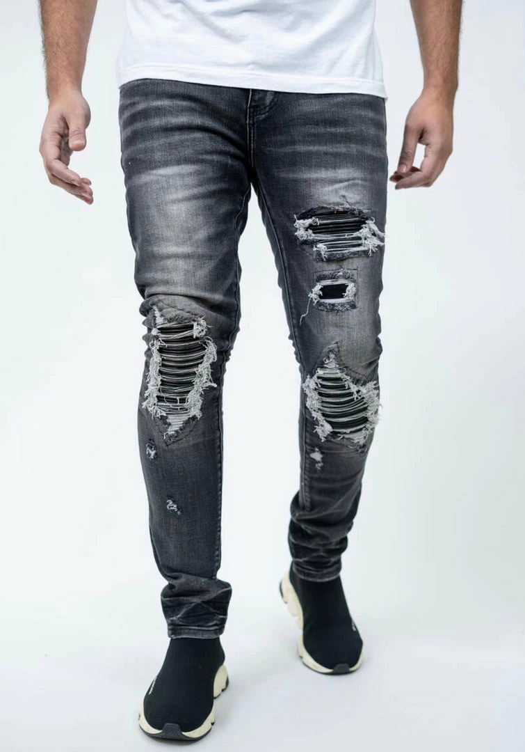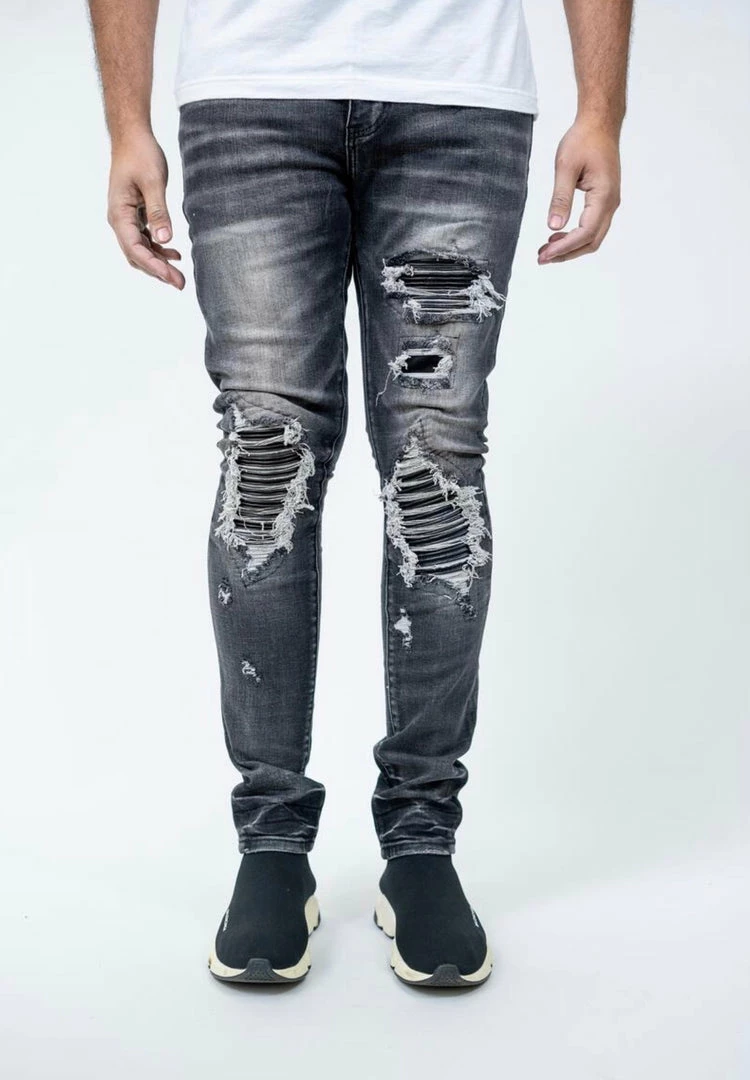 Damati denim (grey/black biker cut prem cut stretch jean -28)