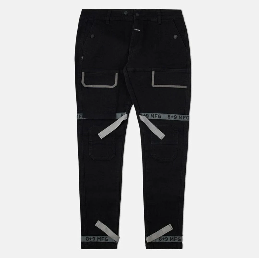 Eight & nine (black/grey strapped slim utlity wash jean)