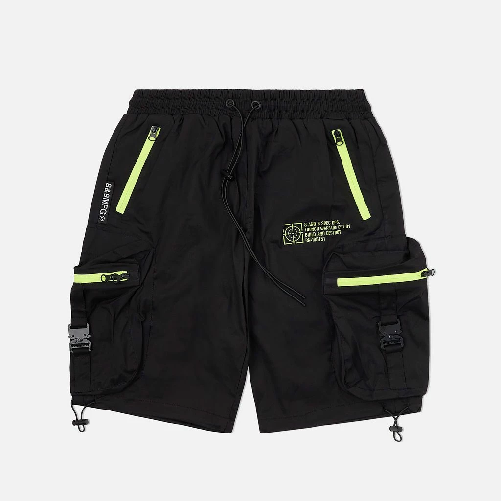 Eight & Nine (black/lime Green Combat Cargo Zipper Short)