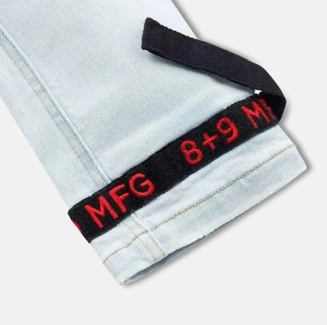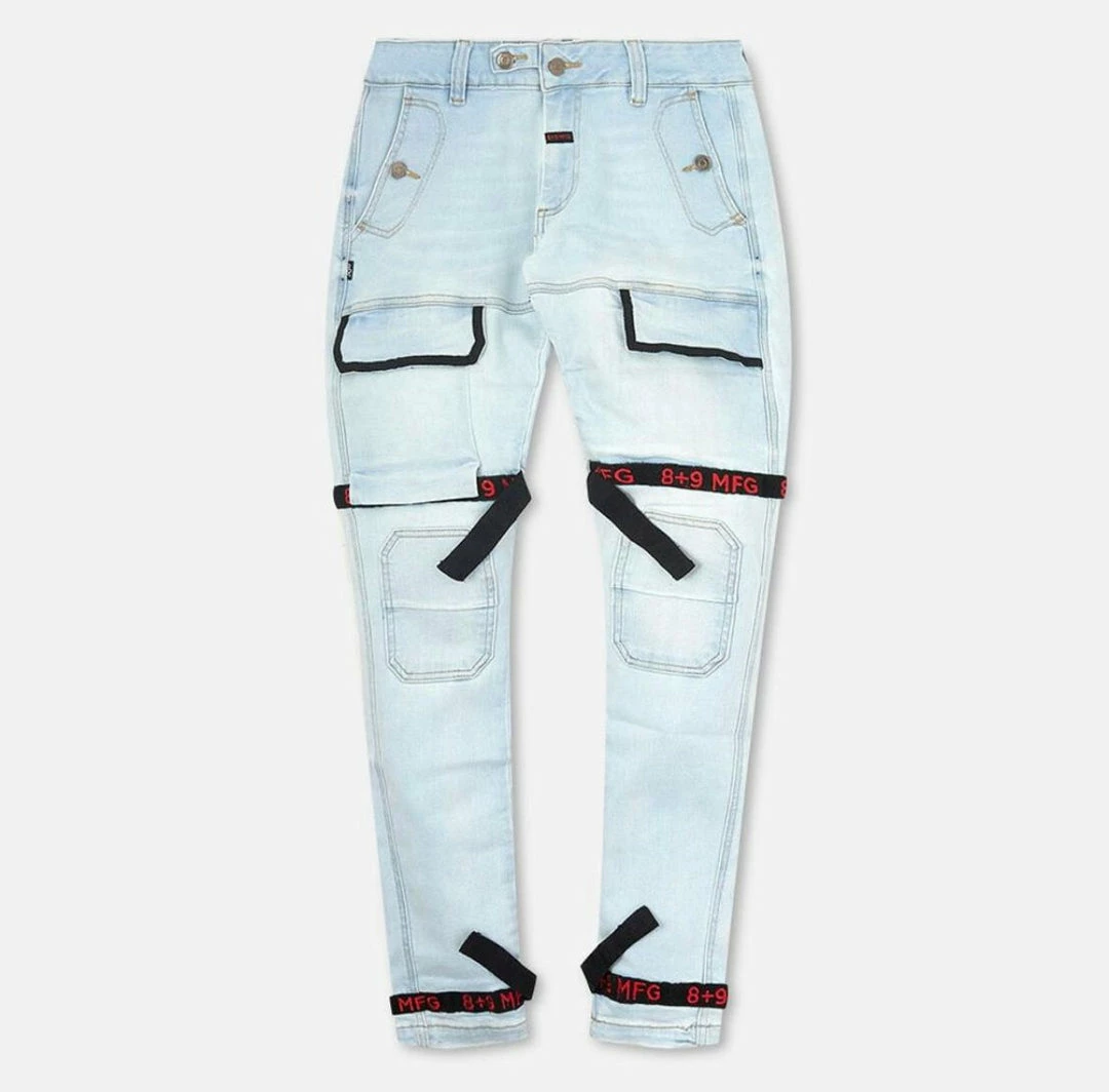 Eight & Nine Eight Nine (light Blue/red Strapped Slim Utility Wash Jean)