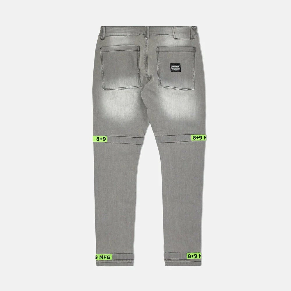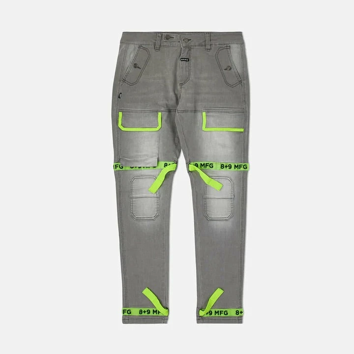 Eight & nine (grey /volt strapped slim utility wash jean)
