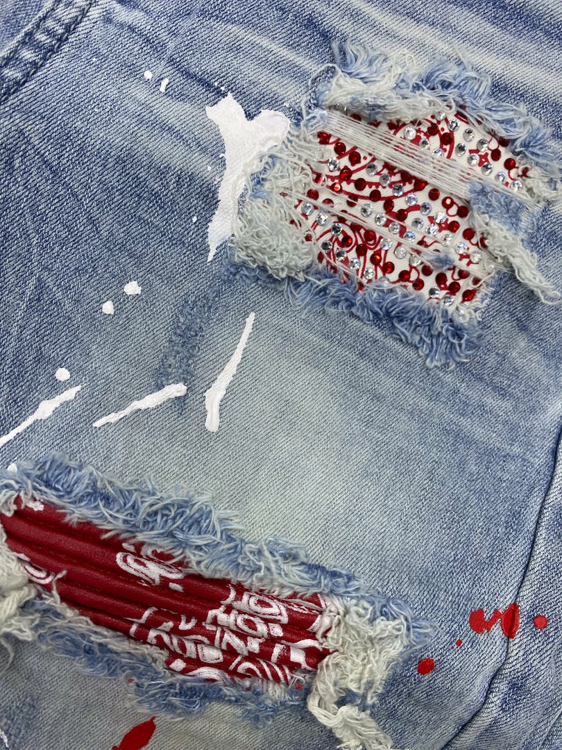 Ferrari massari (blue/red biker bandana super skinny crystal jean)