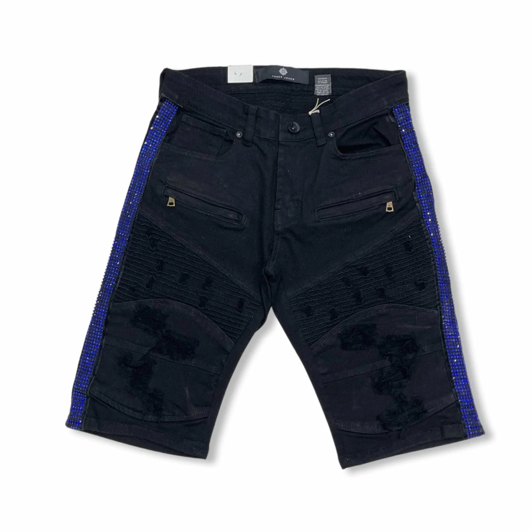 Focus (black/Royal Blue Cut Biker Crystal Stripe Short)
