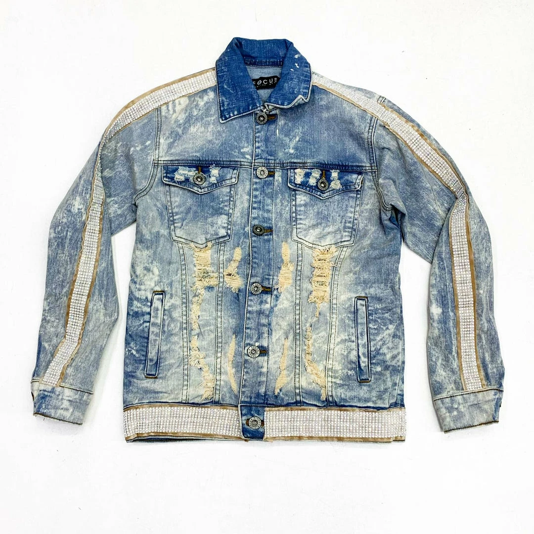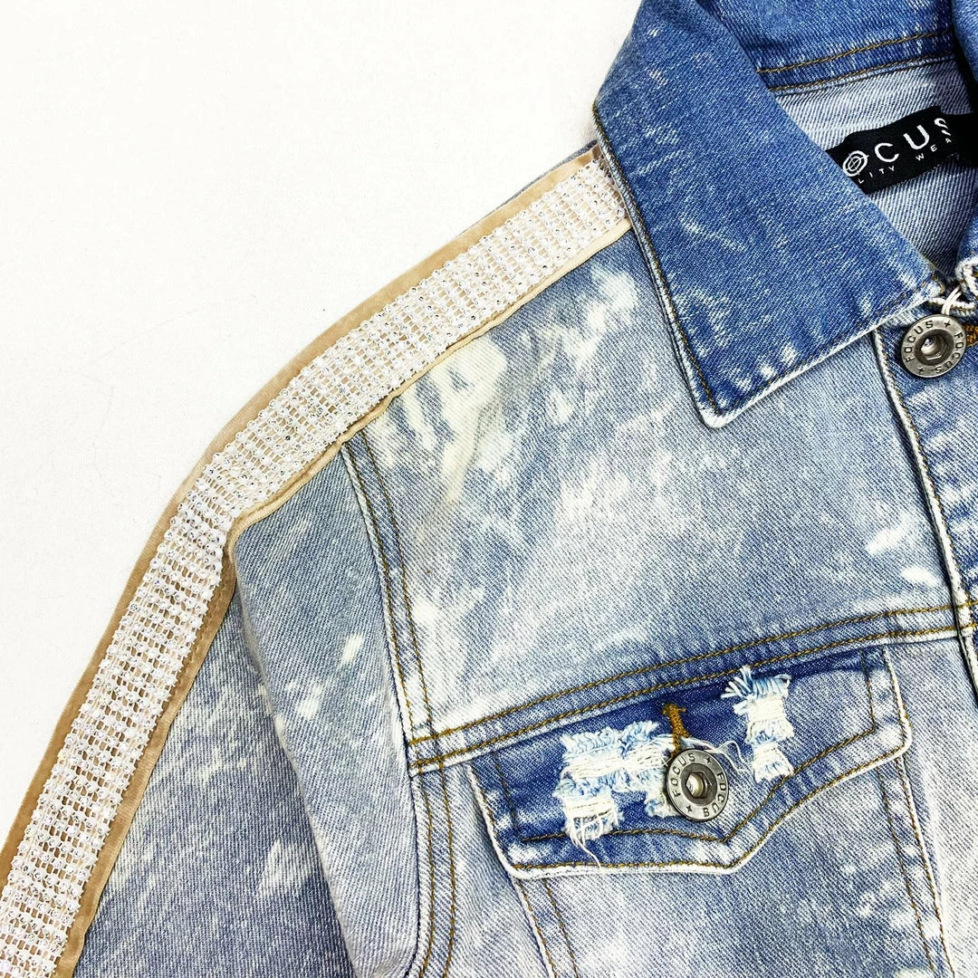 Focus (blue/khaki cut crystal denim jacket) True fittedÂ