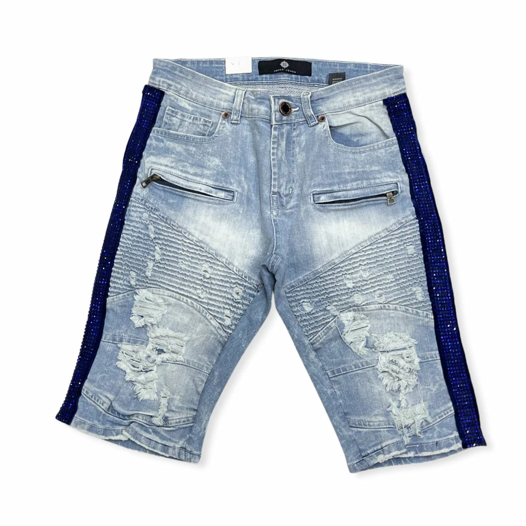 Focus (light Blue /Royal Blue Cut Biker Crystal Stripe Short)