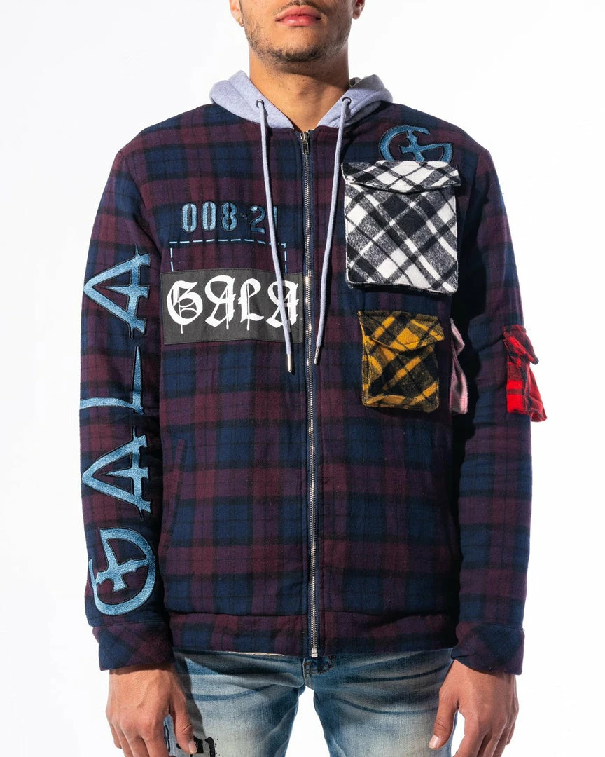 The “ACCOMPLICE Fleece Flannel” is a cozy insulated hooded flannel jacket designed to set off your fit and keep you warm when you step out.