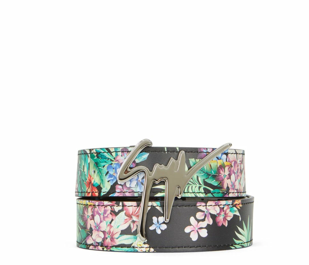 Giuseppe zanotti (black floral/sliver leather belt)