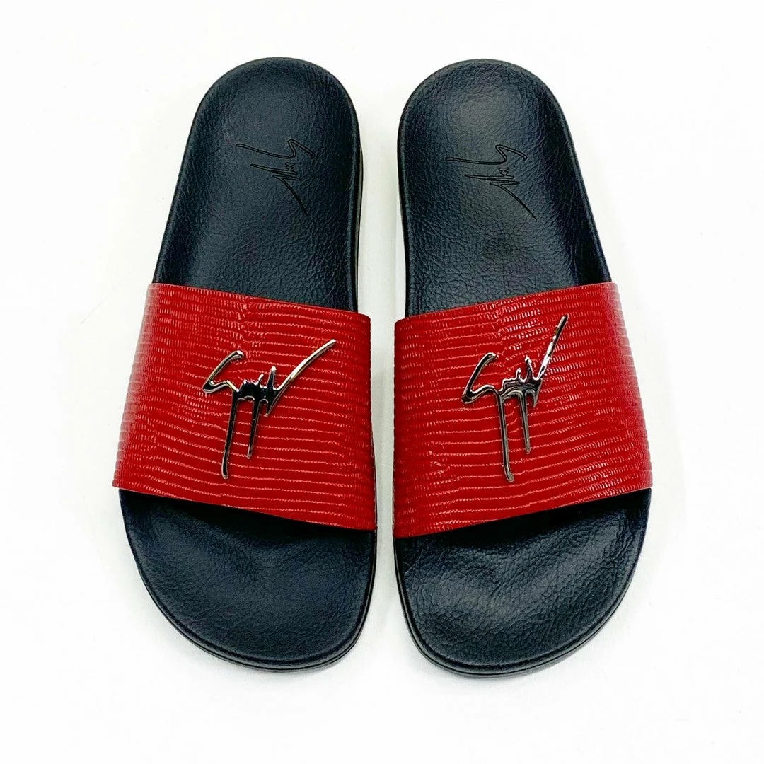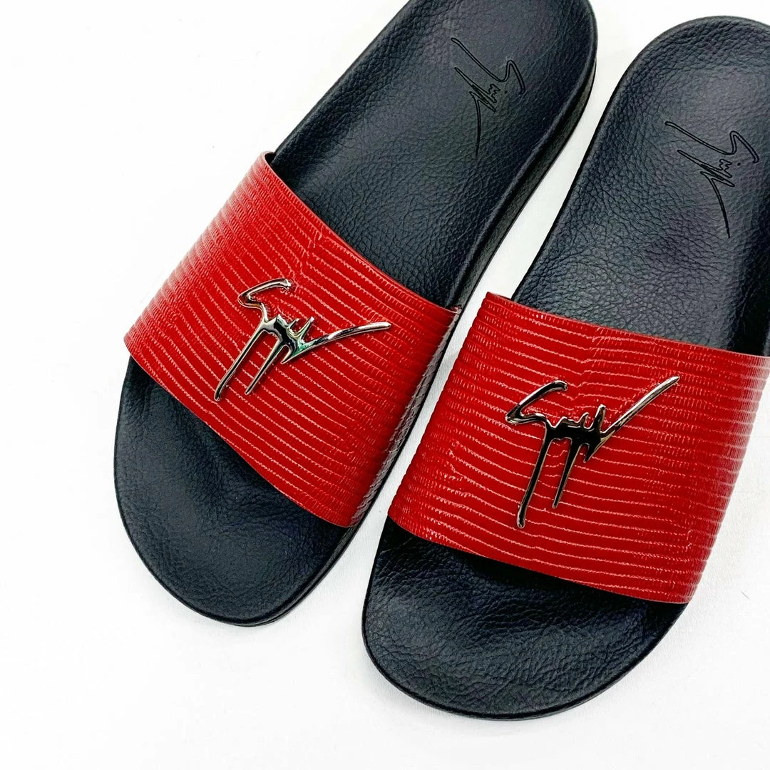 GIUSEPPE ZANOTTI (red/Sliver/Jet black leather slides)