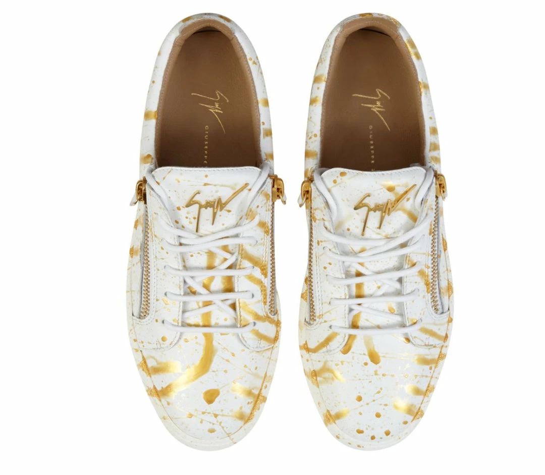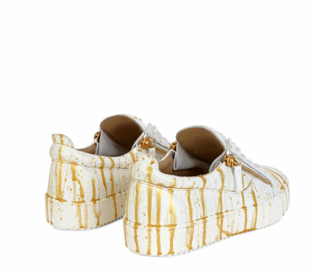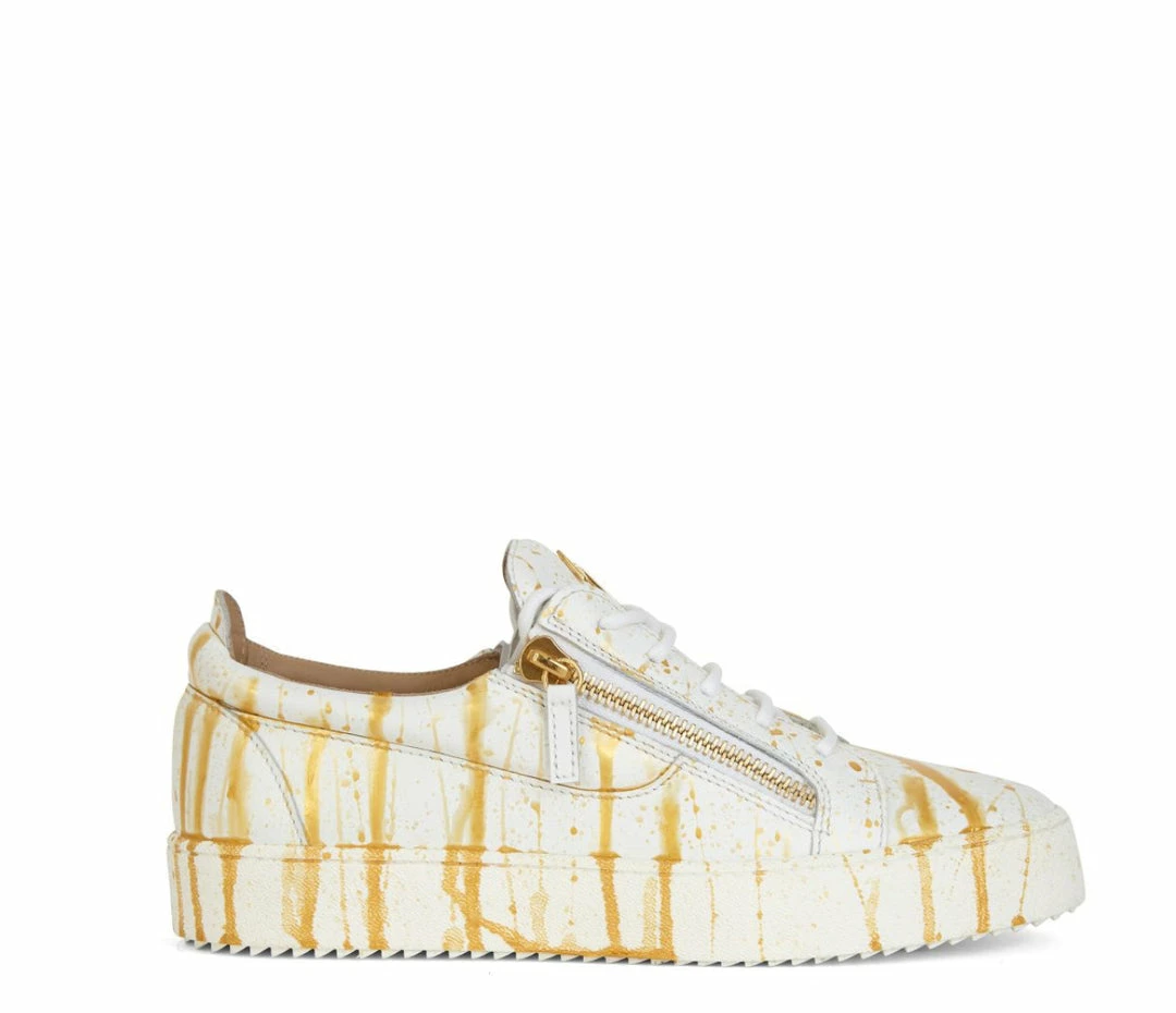 Giuseppe zanotti (white/gold Frankie low top sneaker)