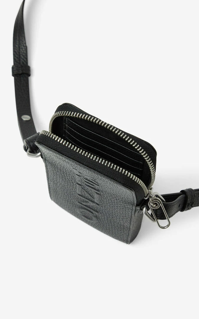 What a delight it is to carry this phone holder, an accessory that is as practical as it is stylish, around with you wherever you go. We especially love its small format and rectangular shape, perfect for our everyday lives. Metallic details embellish this grained leather accessory which is worn across the body.