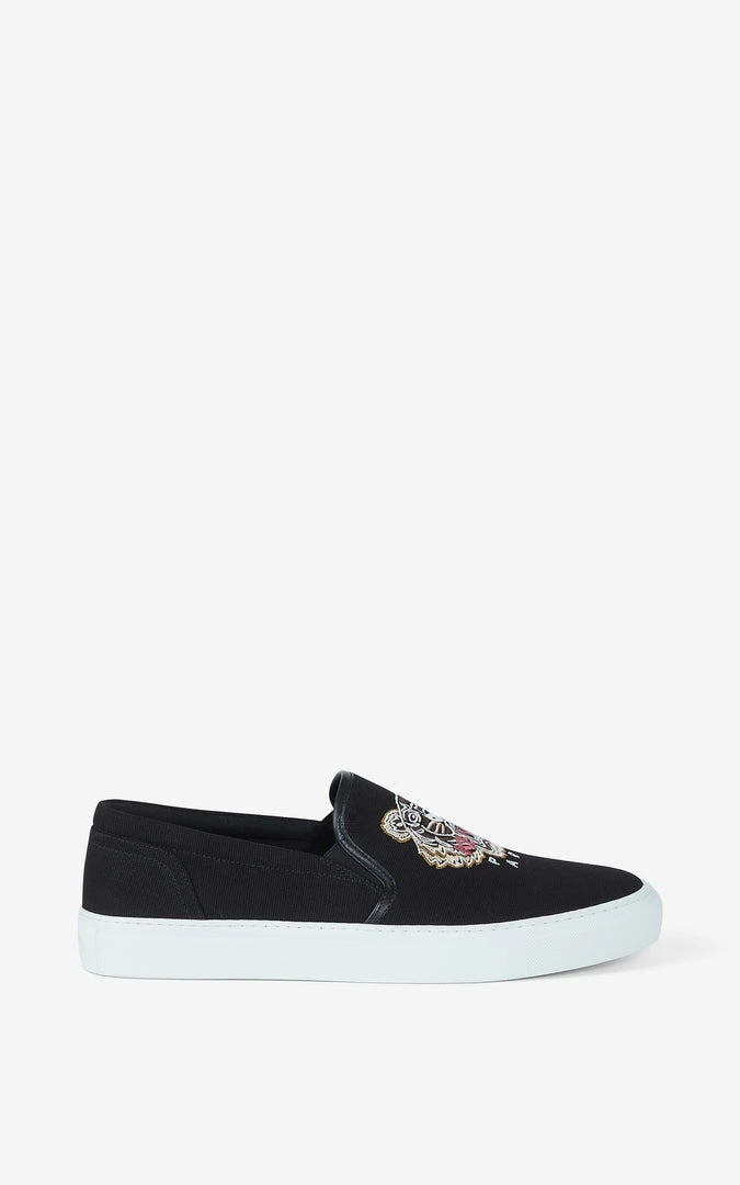 Inspired by skate shoes, this model is a KENZO classic. These slip-ons brilliantly combine the comfort of trainers and the practicality of slippers, shaking up urban looks. Easy to slip on, they show their originality with the rebellious style of the iconic Tiger head.