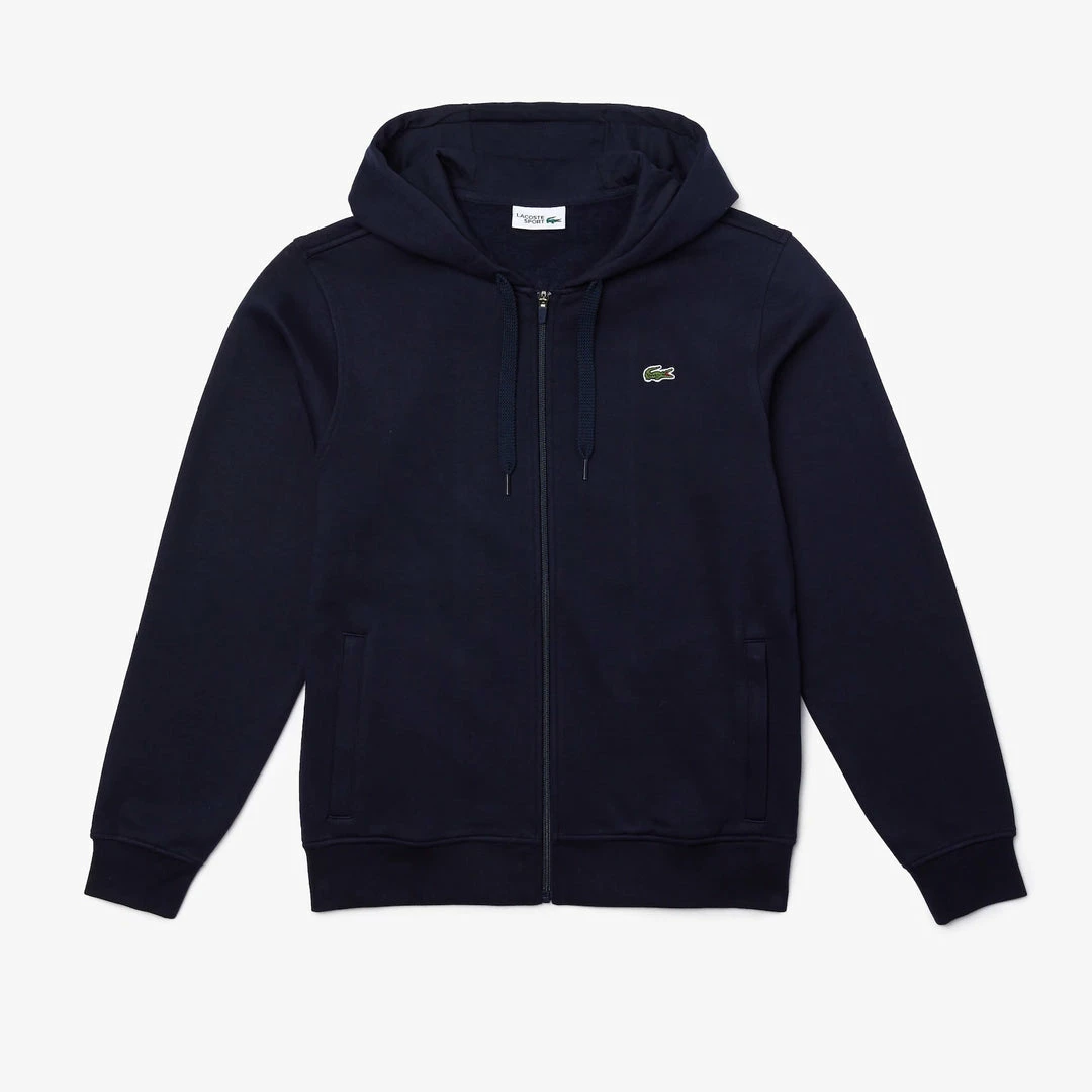 Featuring two side pockets, this hooded zip sweatshirt asserts a contemporary monochrome look. Crafted in cotton blend fleece, this piece sports a diamond taffeta half-moon and panel in the front, as well as an embroidered iconic green crocodile on the chest. Don’t wait to add this irresistible basic to your wardrobe.