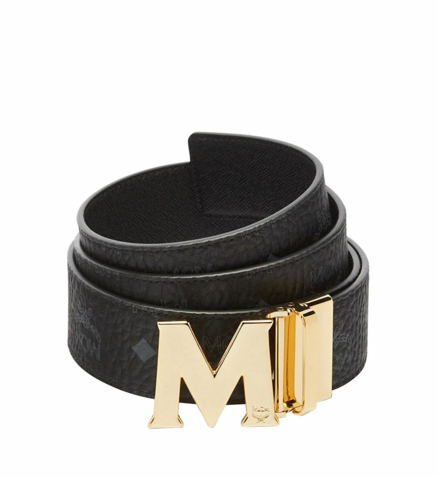 MCM (Black/gold Claus M Reversible Belt In Visetos ) New Arrivals