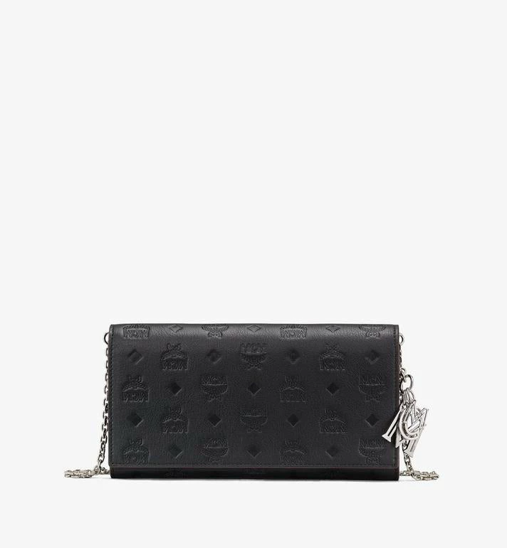 Accented with detachable charms, this nappa leather wallet with a debossed monogram houses multiple compartments for your cash and cards. For handsfree wear, simply attach the chain strap and tuck it inside for later use.