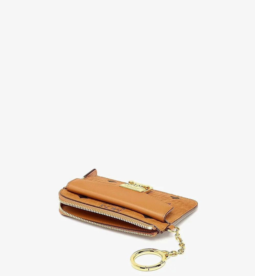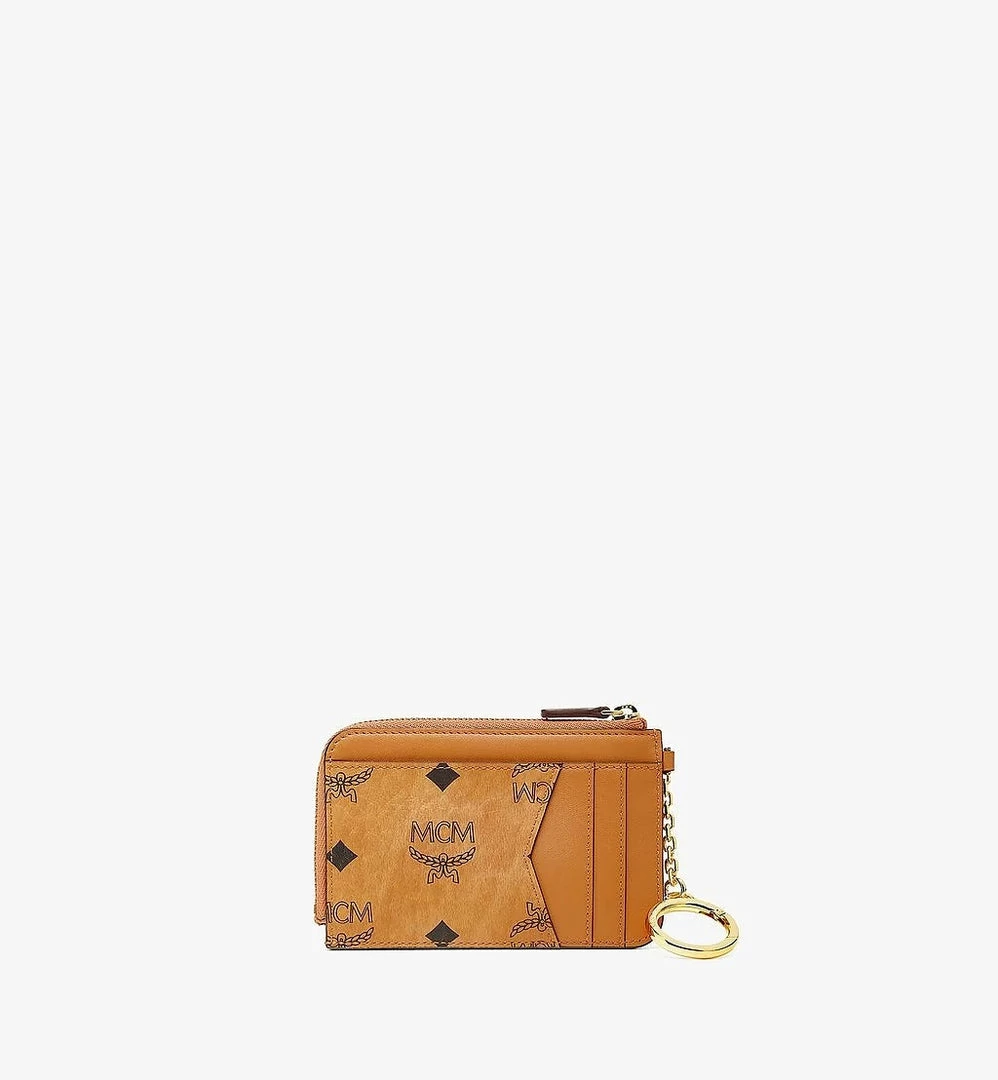 This union of Visetos monogram coated canvas and nappa leather expresses the artisan craftsmanship long associated with MCM. Utilizing heritage hallmarks to greater effect, the mini accessory features a Laurel Lock flap pocket, rear exterior card slots, and a main zip compartment for small essentials. Attach the card case to your bag or backpack to gain a handsfree companion.