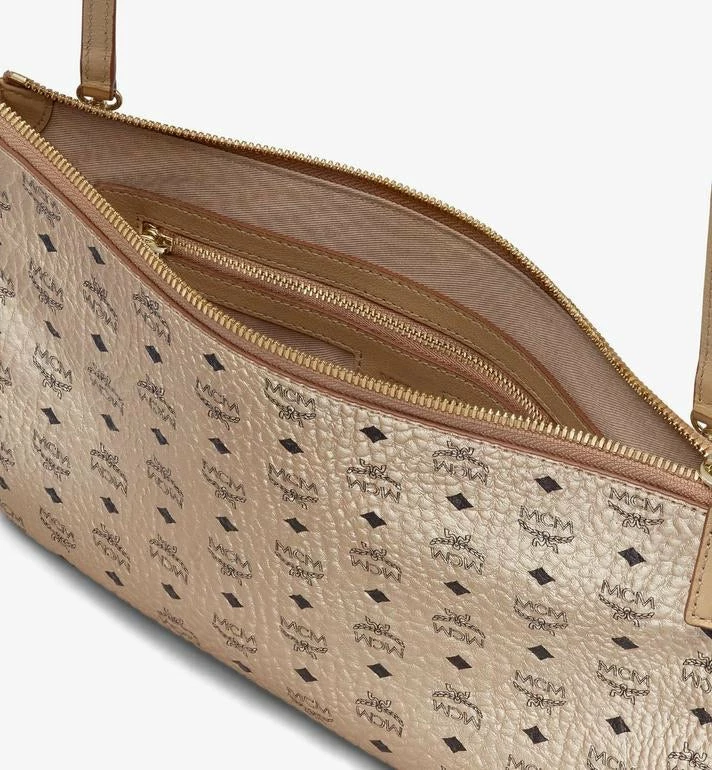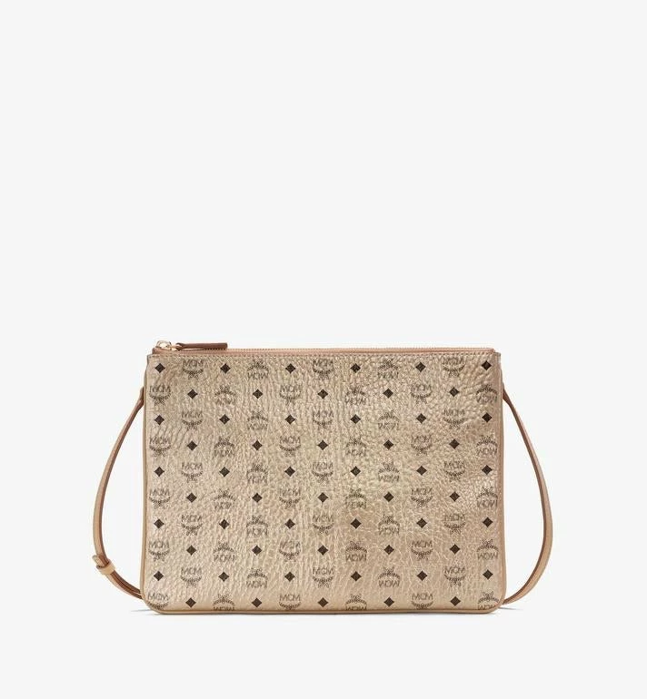 Perfect for conveniently storing all your valuables in one place, this pouch features a roomy main compartment and two discreet pockets. Carry it in hand as a stylish accessory or simply attach its leather strap for comfortable crossbody wear.