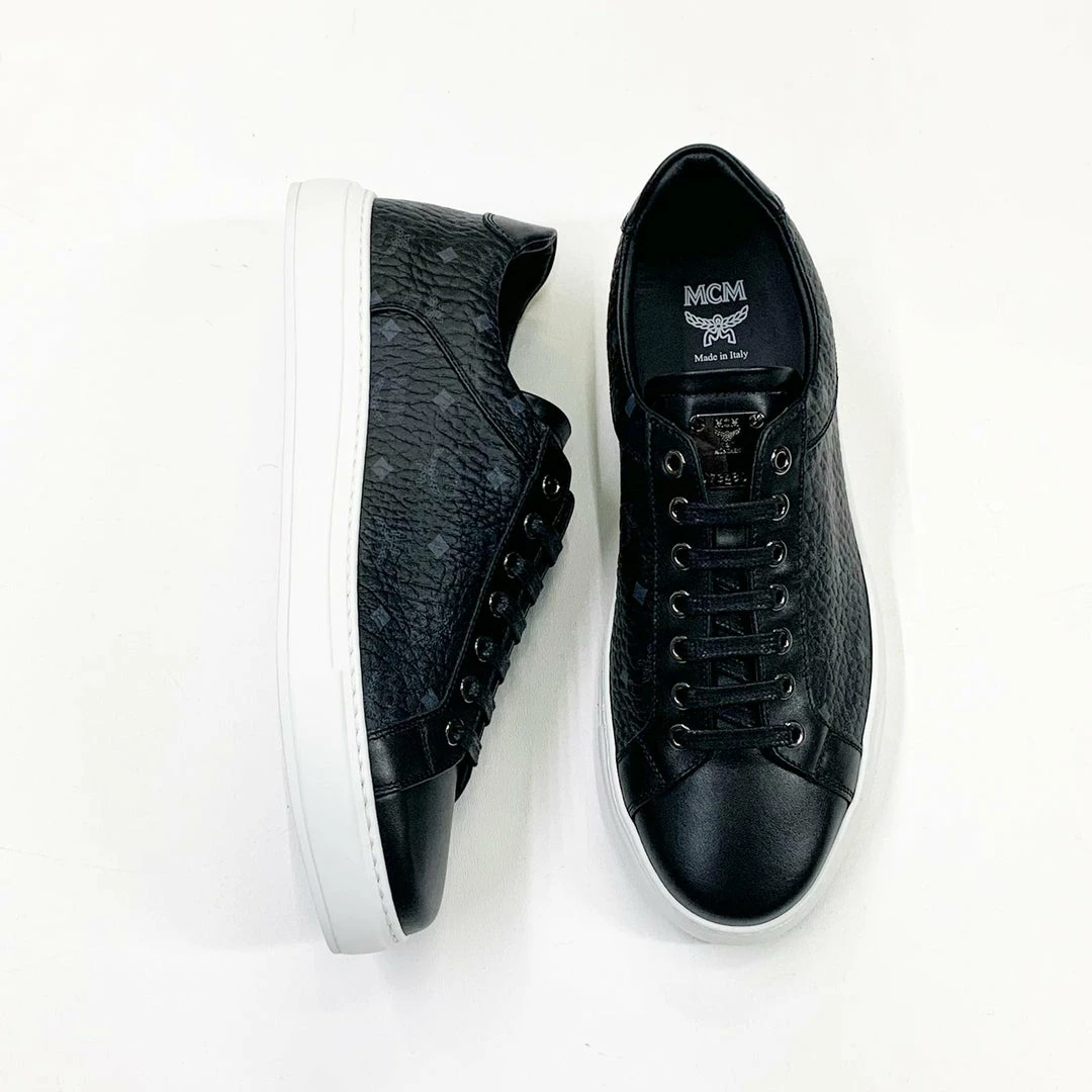 Giving Italian shoemaking a streetwear vibe, these low top laced sneakers with a logo-laden Visetos print back panel, leather body, and “MCM” lasercut brass plate, make a clear statement.
