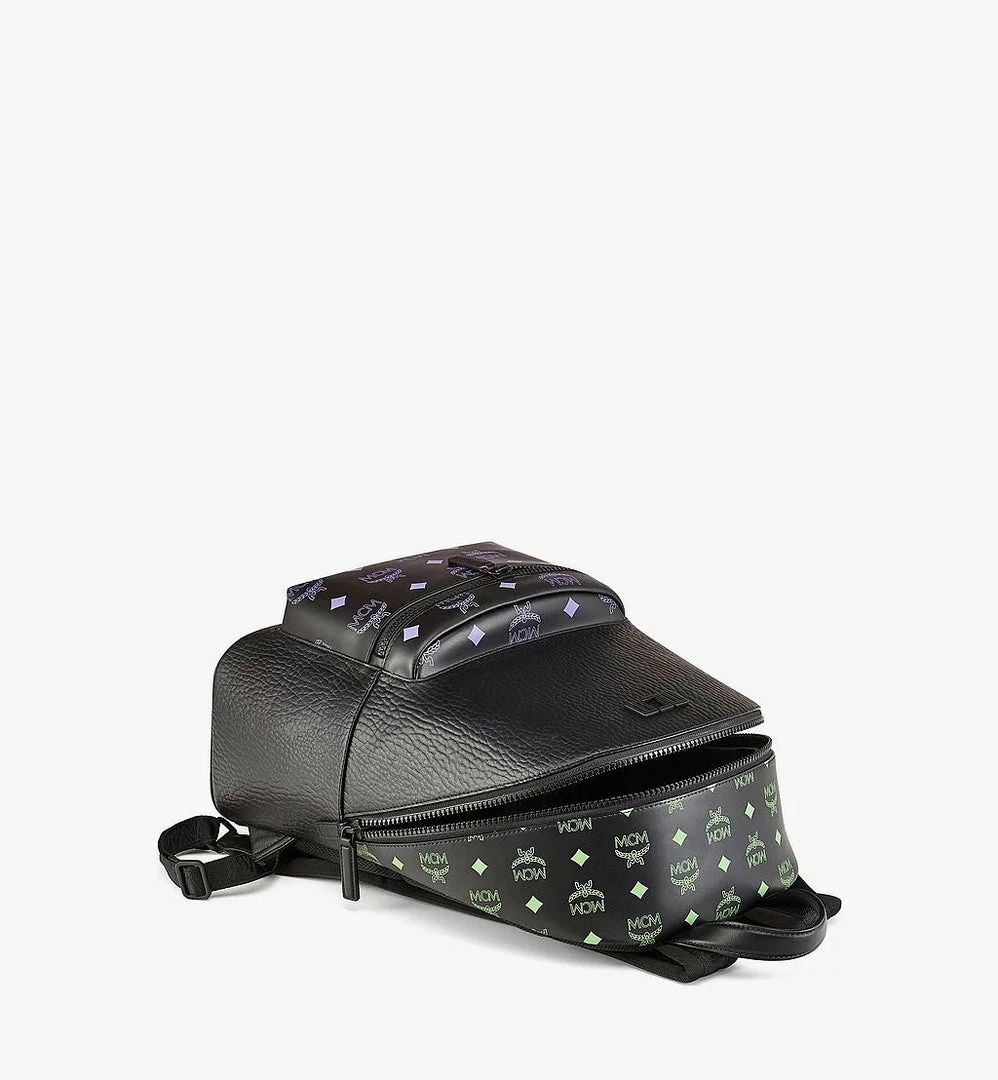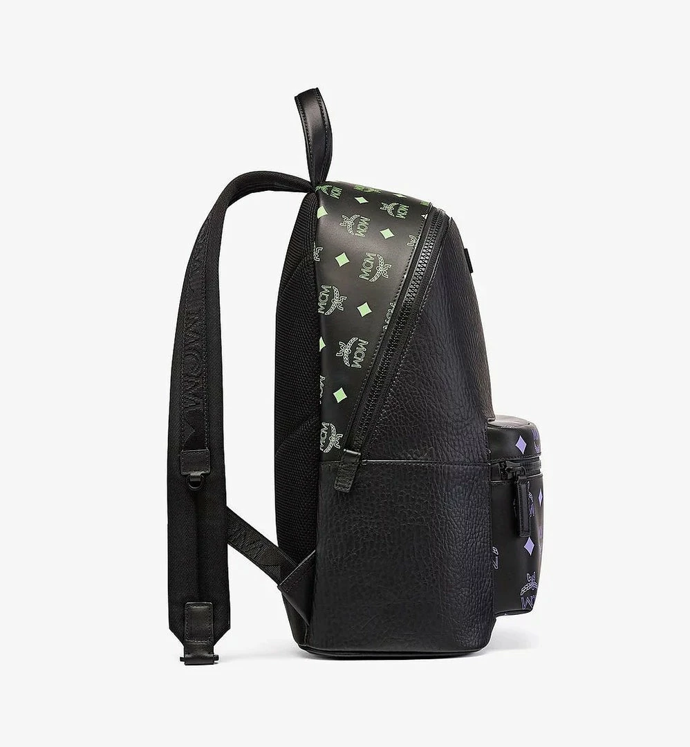 A brilliant representation of MCM heritage, the Visetos monogram is printed in a duet of vivid colors on the Italian leather pockets of the Stark backpack. This proven companion of the global nomad features a multitude of exterior compartments as well as a soft cotton twill interior with sleeves for your 13” laptop, tablet, and small tech.