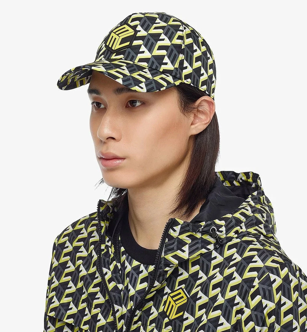 Mcm (yellow Cubic Monogram Print Cap in Recycled Nylon)
