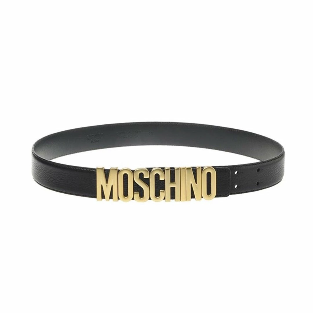 the belt is embellished on the front, by the iconic Lettering logo in gold.