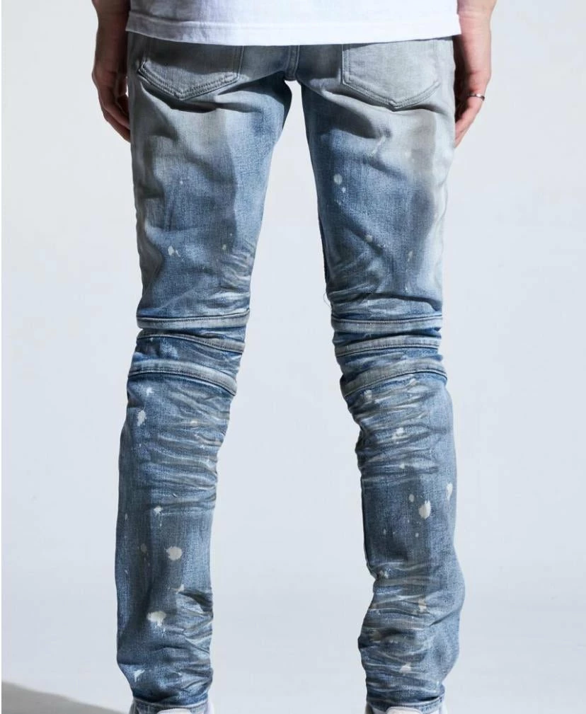 Crysp denim (blue sky walker dirty indigo biker jean -107)