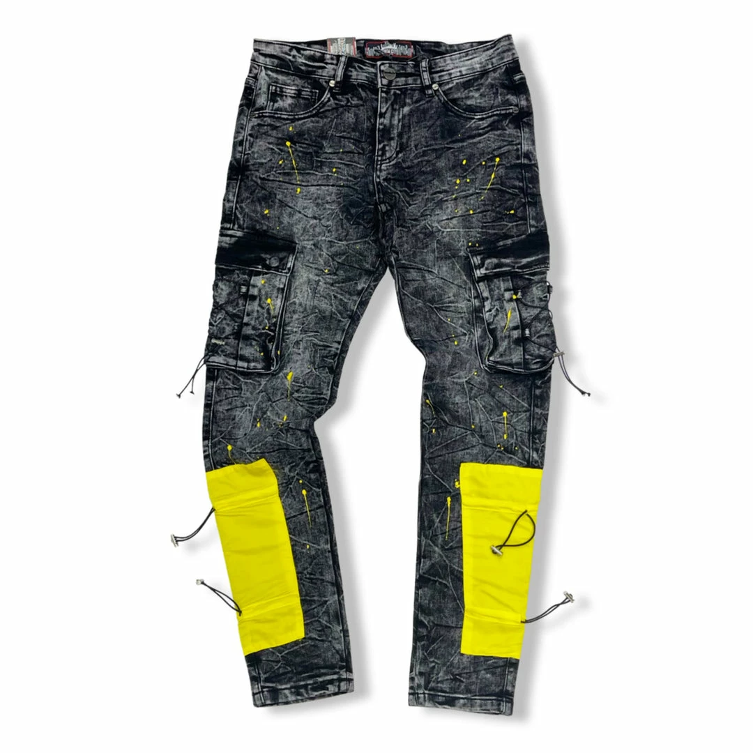 Denimicity (men’s grey/yellow splash cargo jean)
