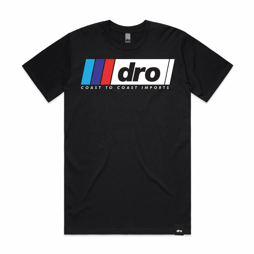 DRO Imports T-Shirt has a large iconic graphic on the front and a large graphic on the back.