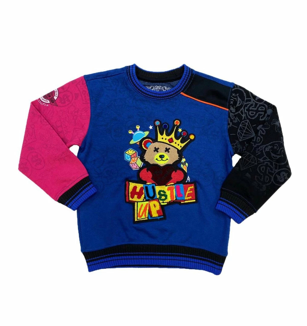 Elite denim (kids royal blue/black “crown hustle up sweater)