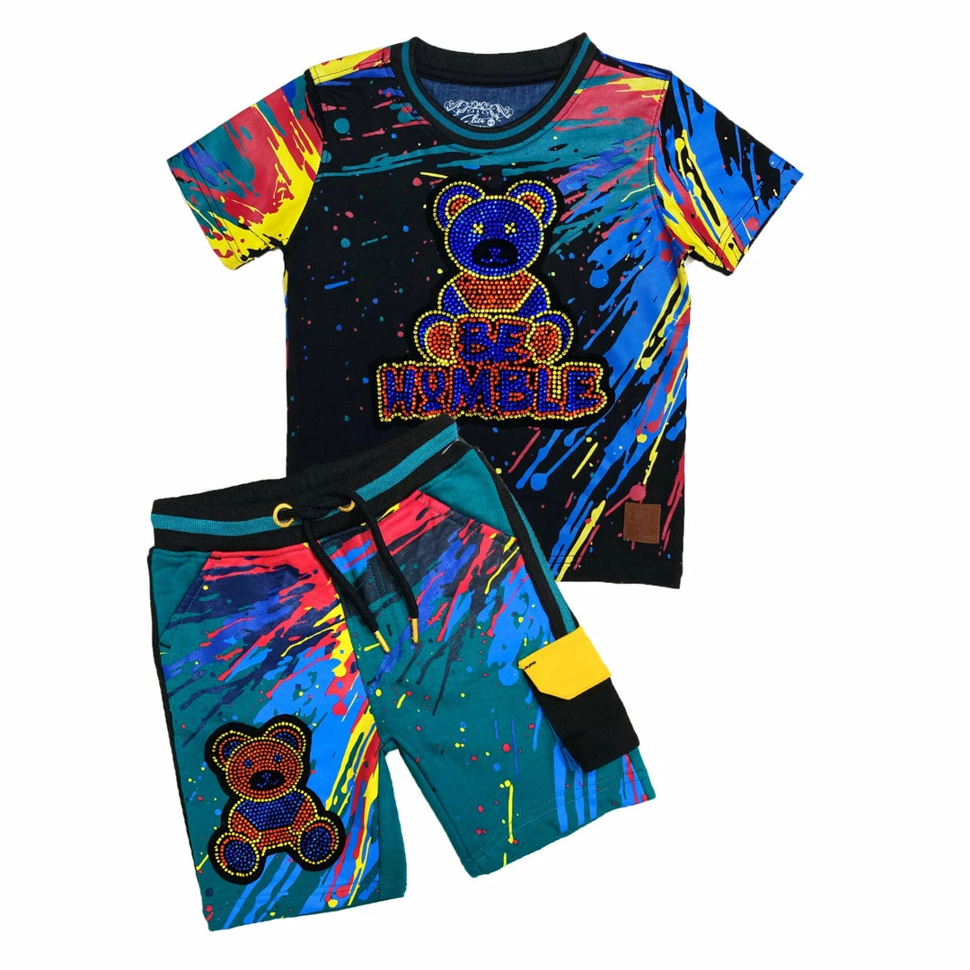 New Arrivals Elite Denim (kids Turquoise/black “be Humble Short Set)