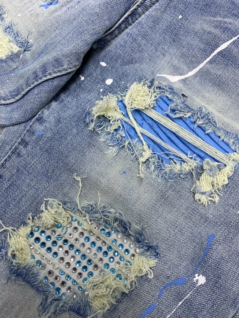 Ferrari massari (blue/sky blue /white biker super skinny crystal jean)