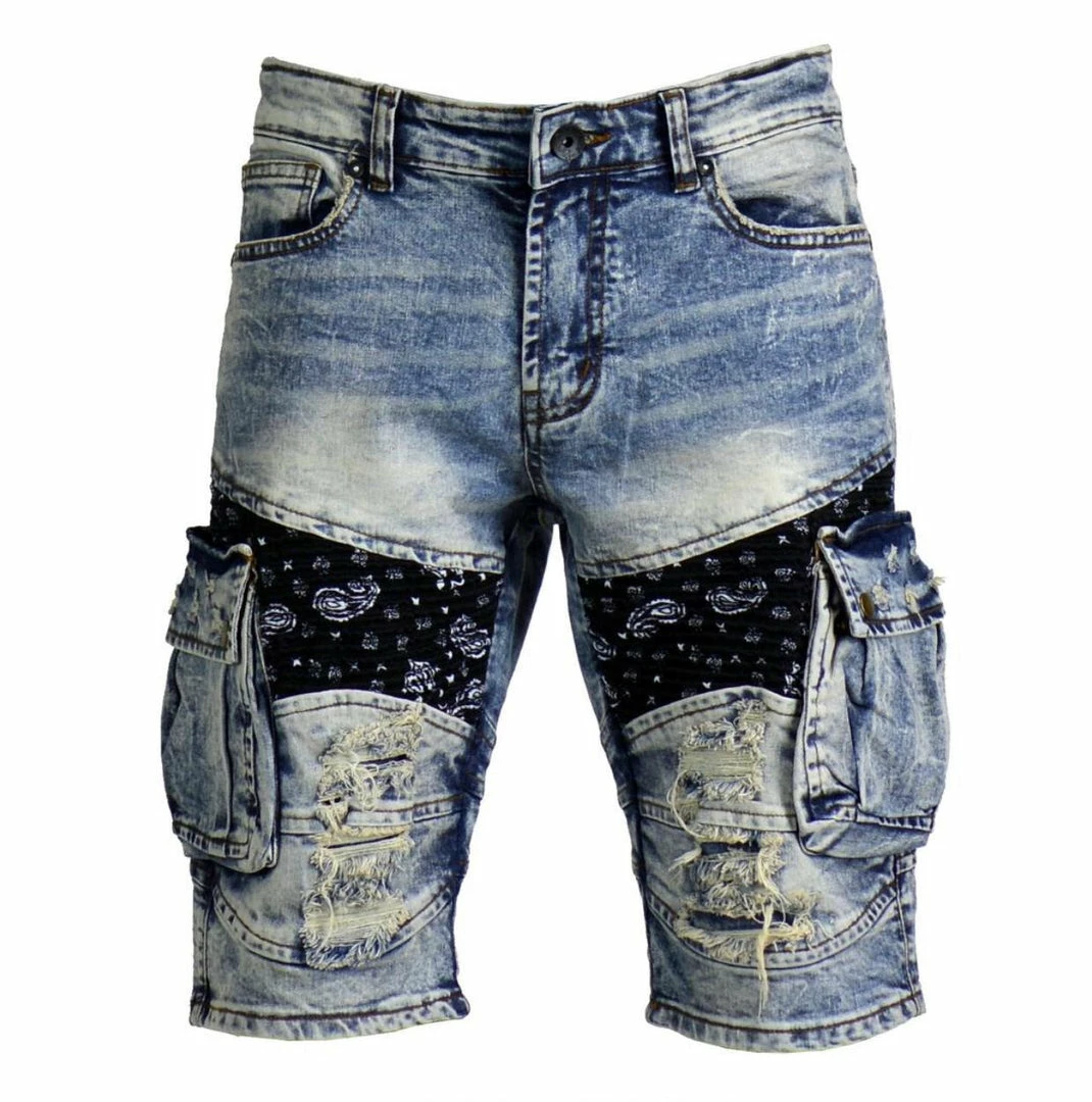 New Arrivals Focus (dark Blue Cut Biker Bandanna Wash Short )