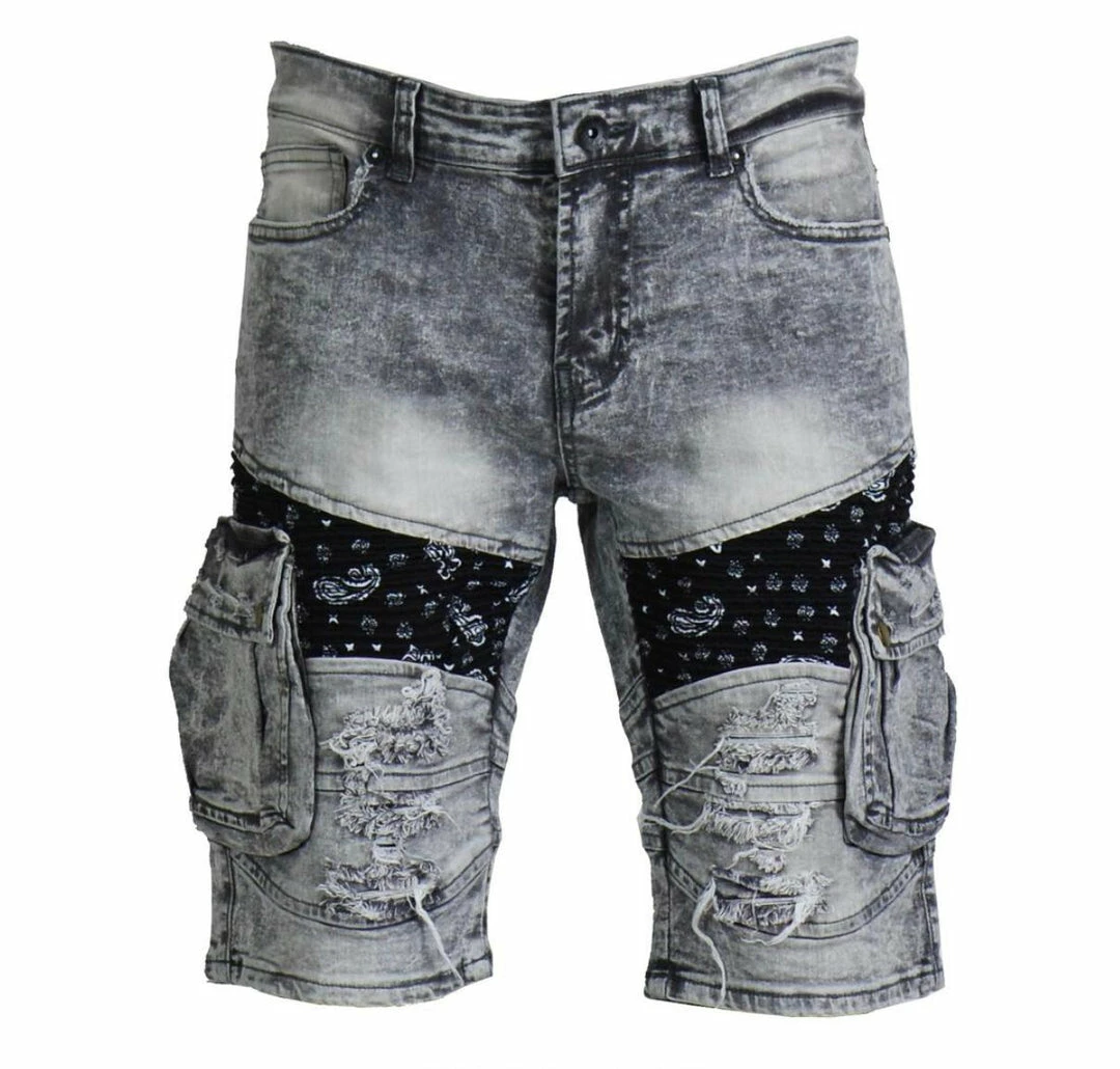 New Arrivals Focus (light Grey Cut Biker Bandanna Wash Short )