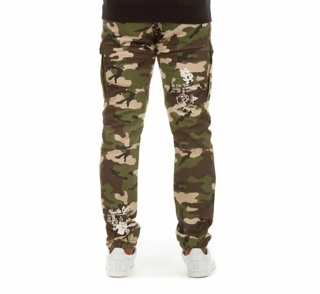 201-9100 – CARGO PANT W/ ALLOVER PRINT AND CONTRAST FABRIC. – DOODLE ART PRINTED ALLOVER THIS STYLE. – 100% COTTON TWILL