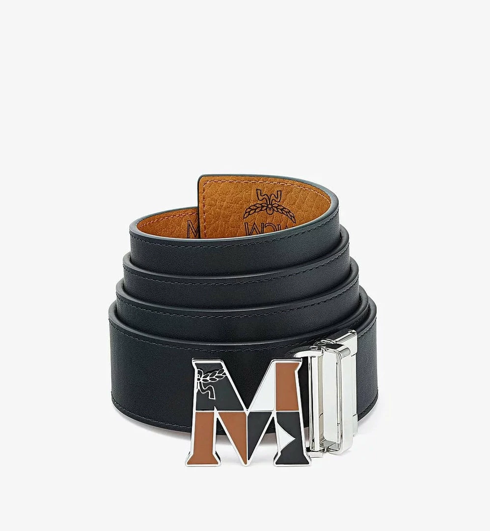 The Claus reversible belt is fashioned in Visetos at the front and nappa leather on the back. Artisan expertise is employed to create a color-blocked “M” buckle featuring a collage of Visetos iconography. As per tradition, the buckle is detachable — allowing the belt to be cut to a customized fit.
