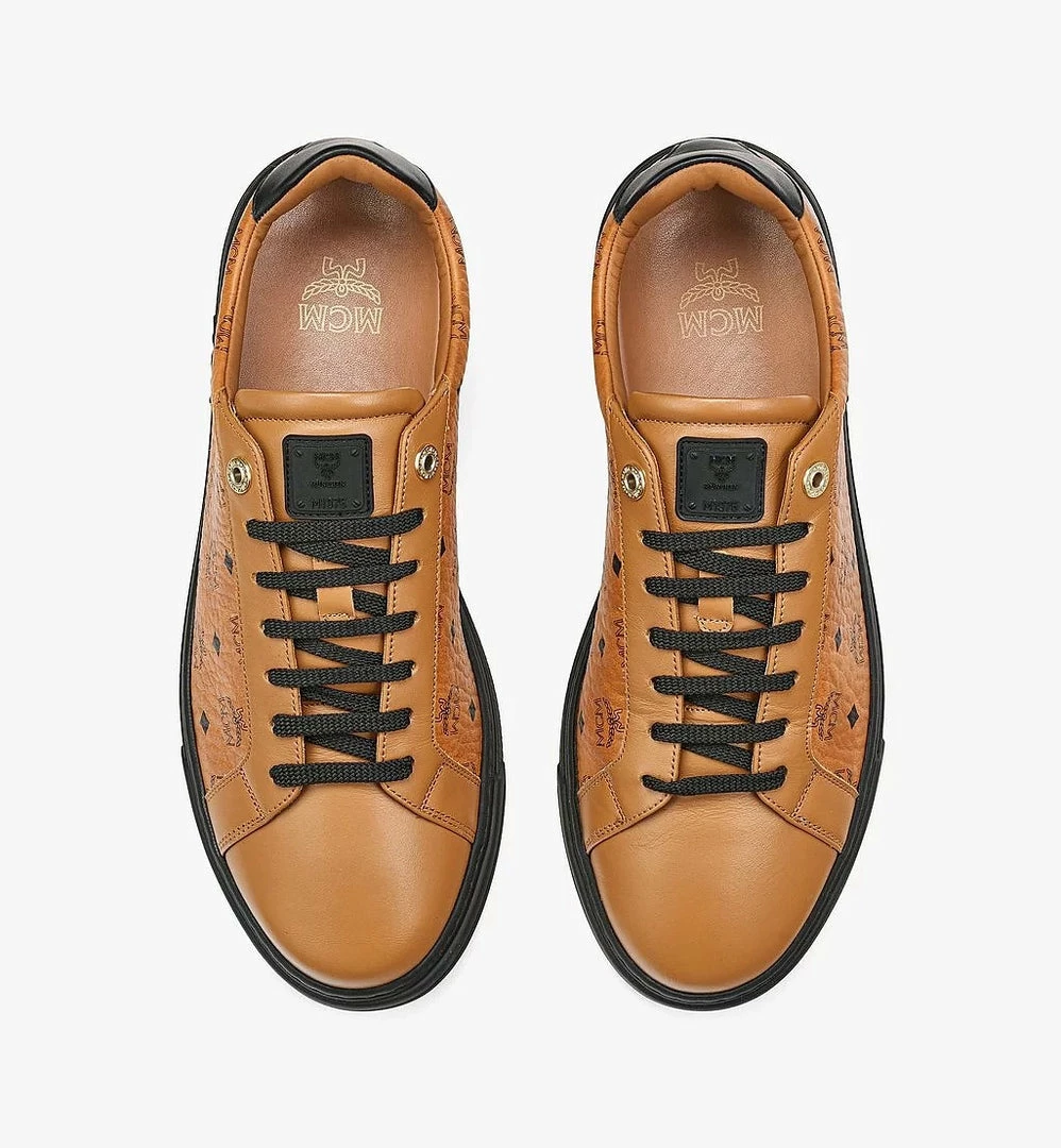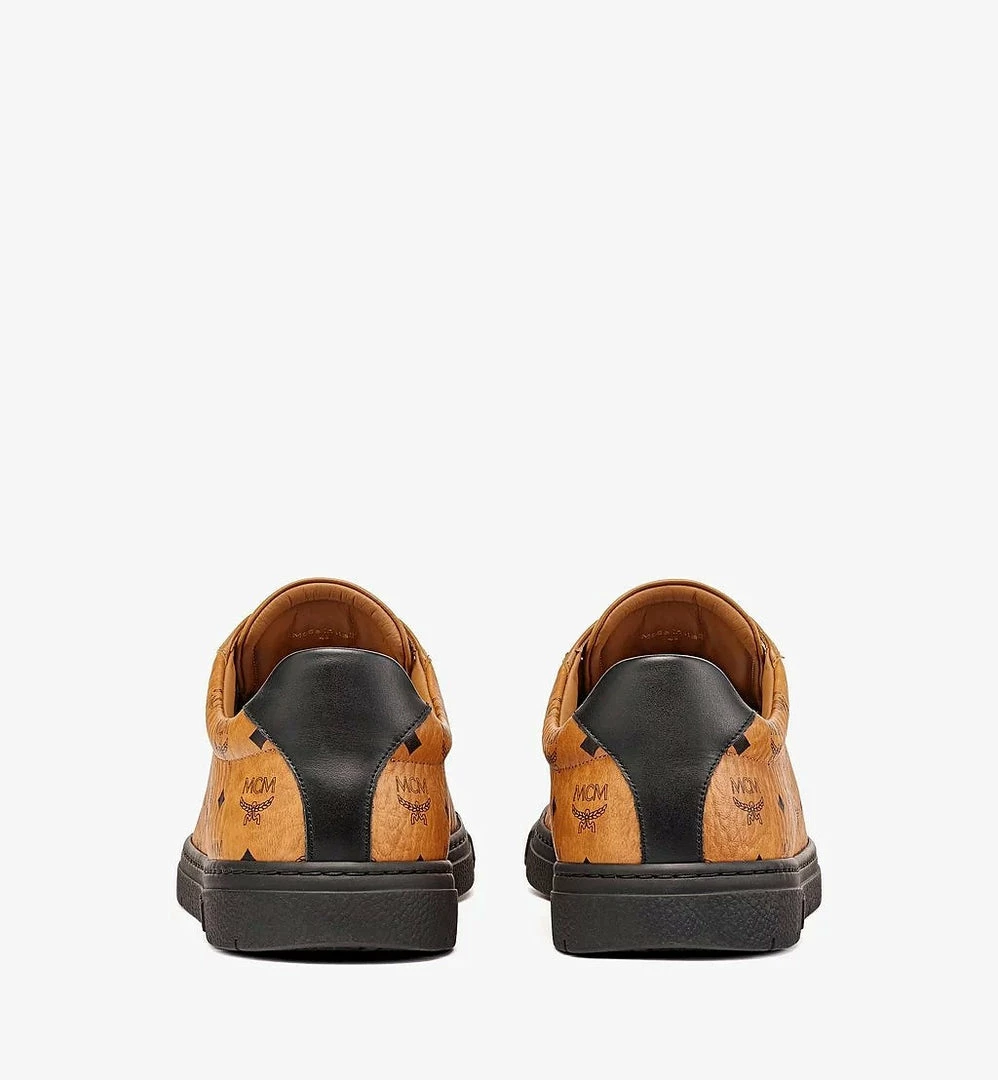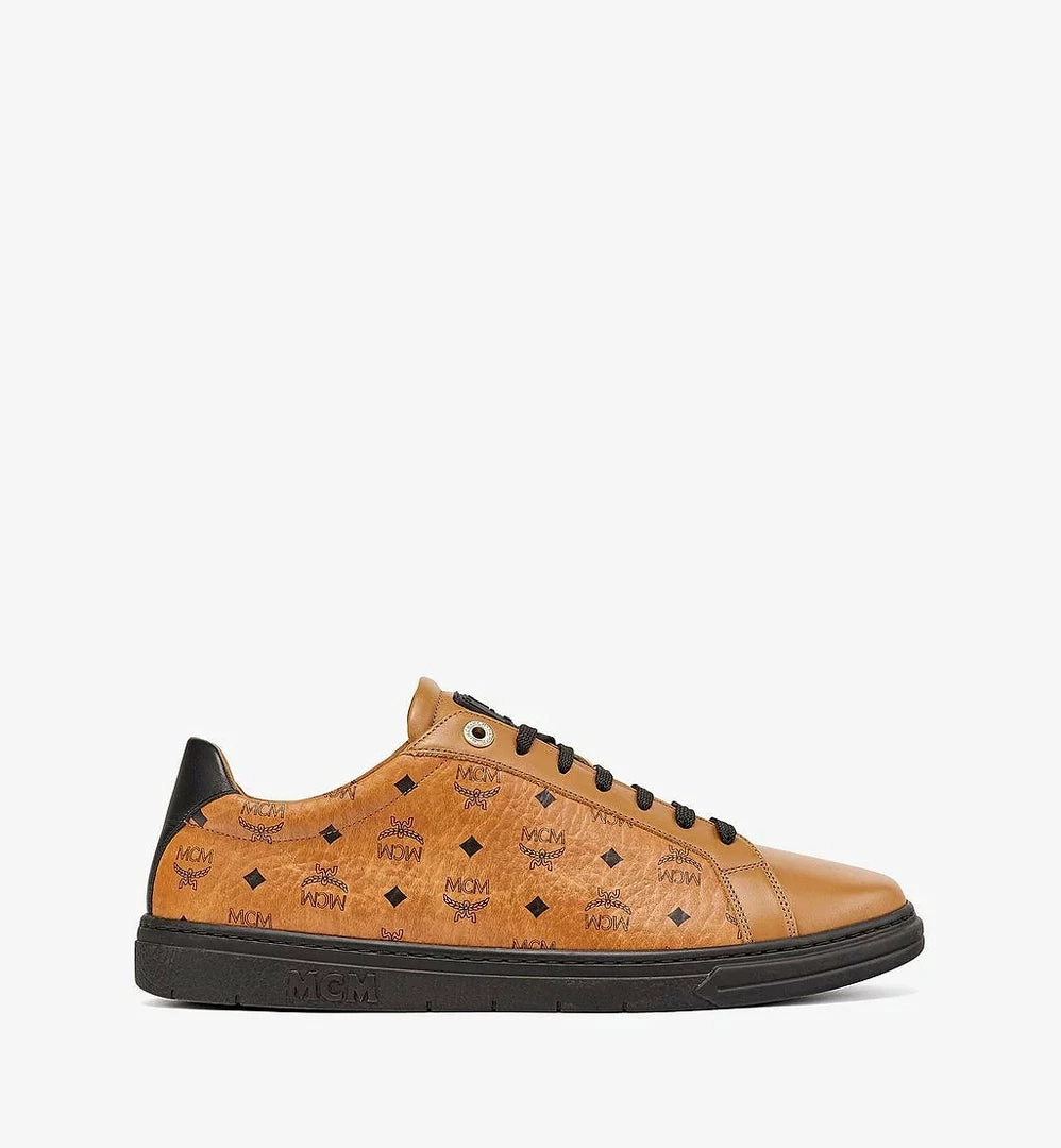The Terrain low-top sneaker is a lightweight style backed by exquisite craftsmanship and quality materials. Featuring a cognac Visetos monogram upper, the classic silhouette is refreshed through an infusion of jet black hues on the shoelaces, MCM logo plate, heel tab, and specially-developed rubber outsole. A padded leather tongue and calf leather inner lining finish off the pair, elevating wearer comfort with artisan sophistication.