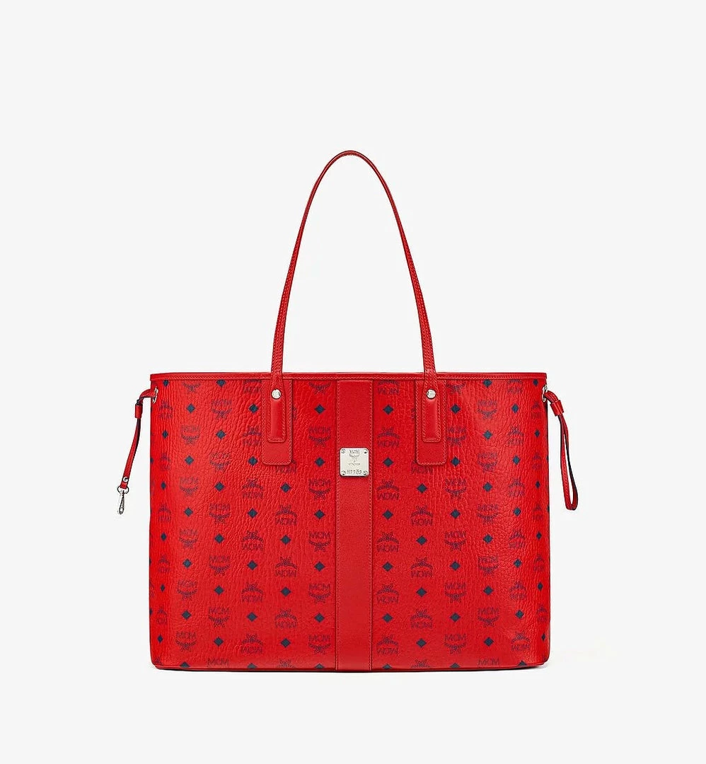 A sweet spin on a passionate colorway, the Candy Red line unifies scarlet Visetos and nappa leather on this luscious rendition of the Liz shopper. Featuring a lightweight silhouette adjusted through leather side drawstrings, the everyday companion can be reversed to show off the interior optic check pattern. Greater versatility arrives in the form of a removable zip pouch, which thrives as a standalone purse for minimalist occasions.