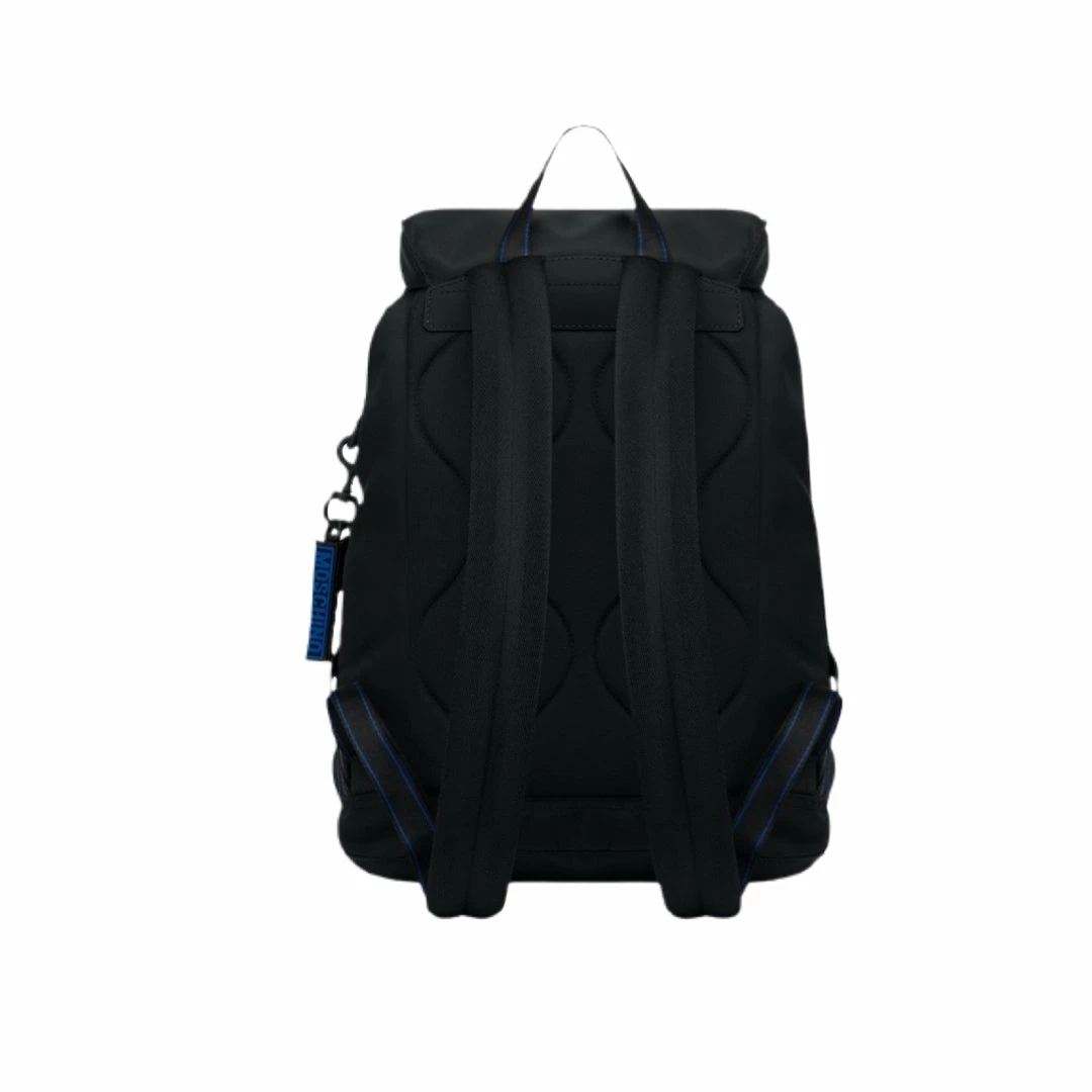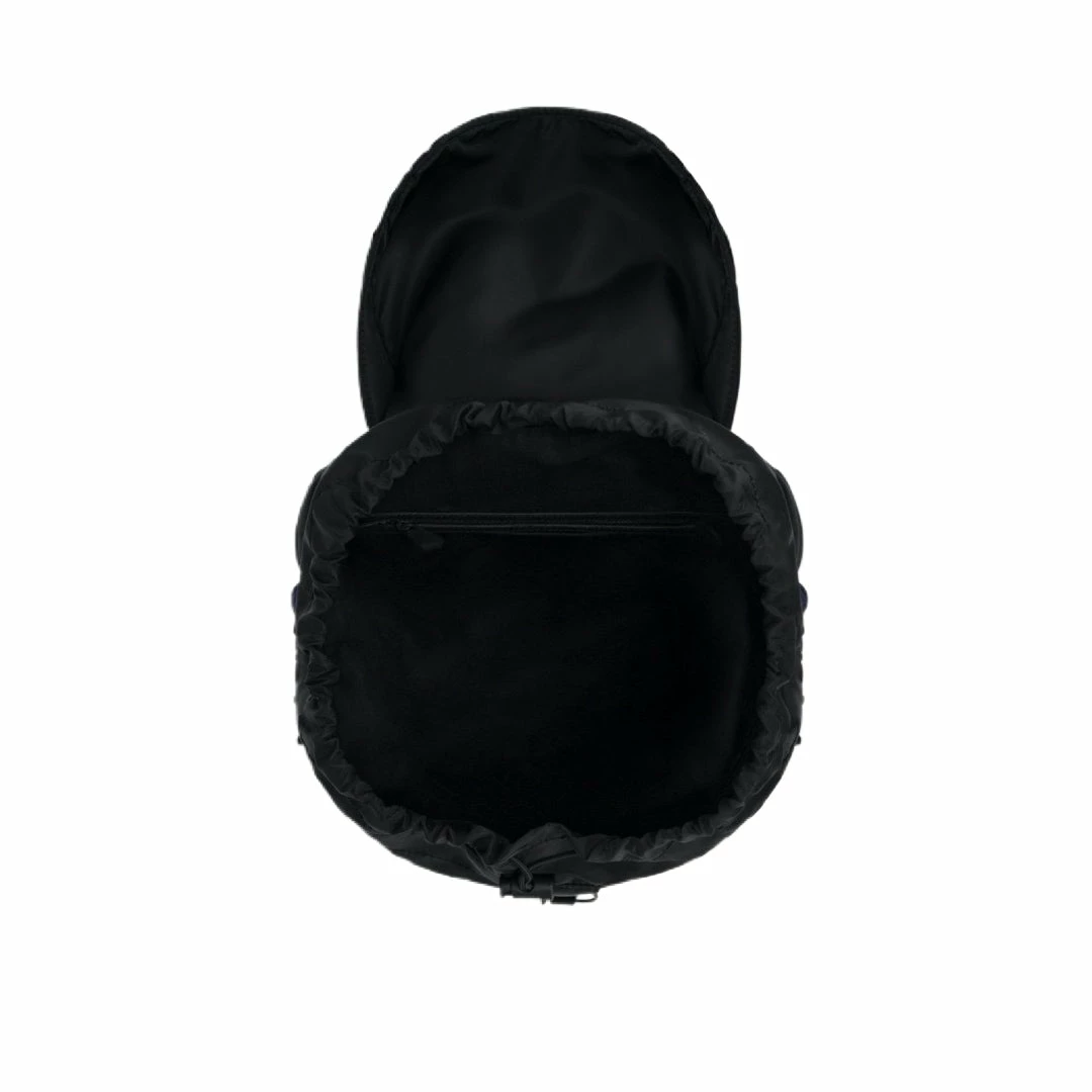 100% recycled nylon backpack with logo made with injection technique, tapes with jacquard logo and organic cotton lining. The details are also made of 100% recycled Global Recycled Standard certified materials.