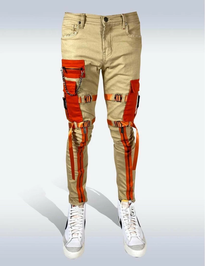 New Arrivals Preme Denim (khaki/orange Cargo Zip Jean)