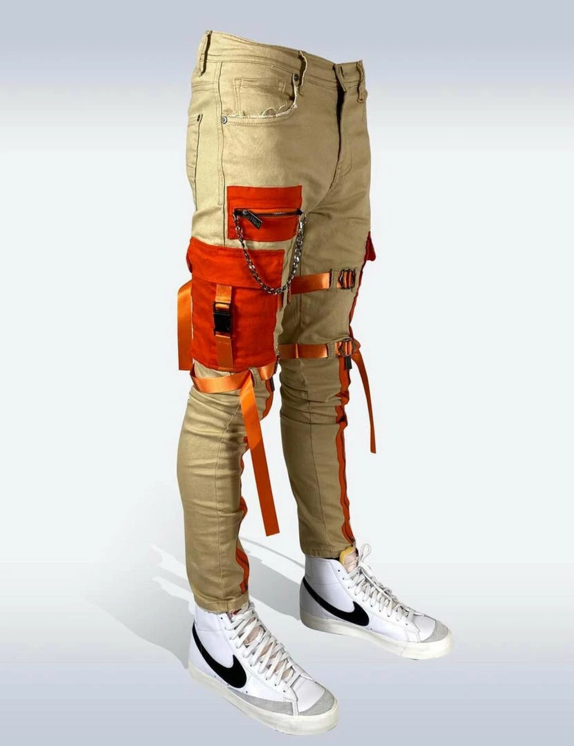 Preme denim (khaki/orange cargo zip jean)