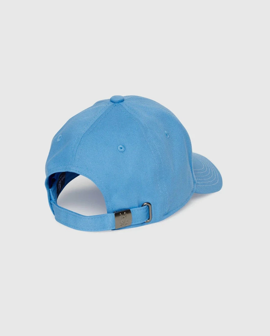 Cap things off in style with the mens Wardell baseball cap. Crafted from 100% cotton twill, this baseball cap has a classic silhouette, with a pre-bent brim and an adjustable strap at the rear. The Wardell baseball cap is finished with a printed free hand style Psycho Bunny logo on the front, with contrast stitching across the brim.