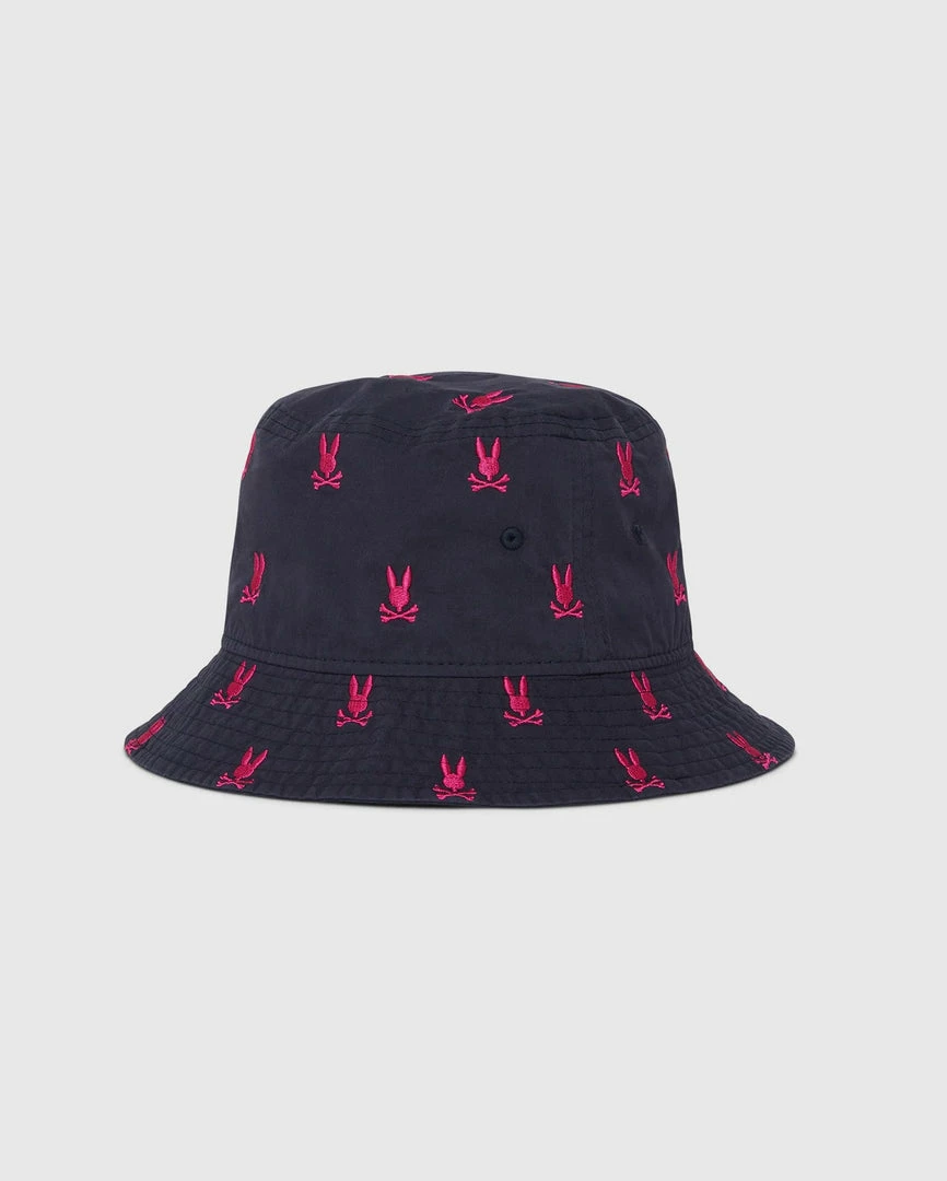 The mens Belford bucket hat offers a twist on a classic. This bucket hat is crafted from 100% cotton twill, with stitching along the brim to give it structure, and taped seams on the inside for comfort and durability. The Belford hat is finished with a pattern created from embroidered Psycho Bunny logos.