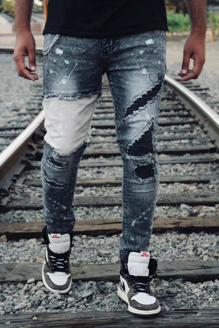 Reelistik nyc (light grey/cream/black cut wash jean)