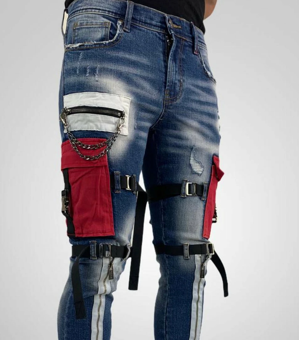 Preme denim (blue/red cargo zip jean) True fittedÂ