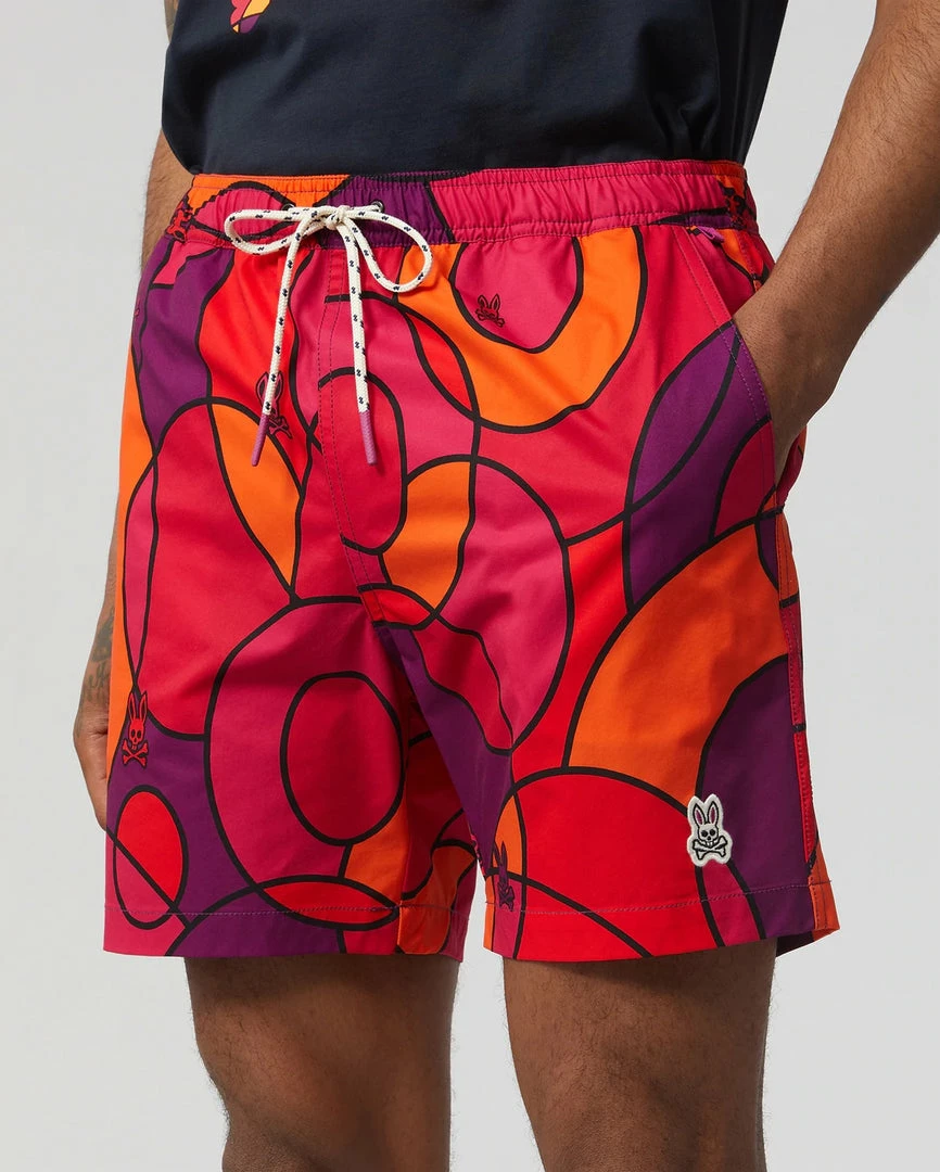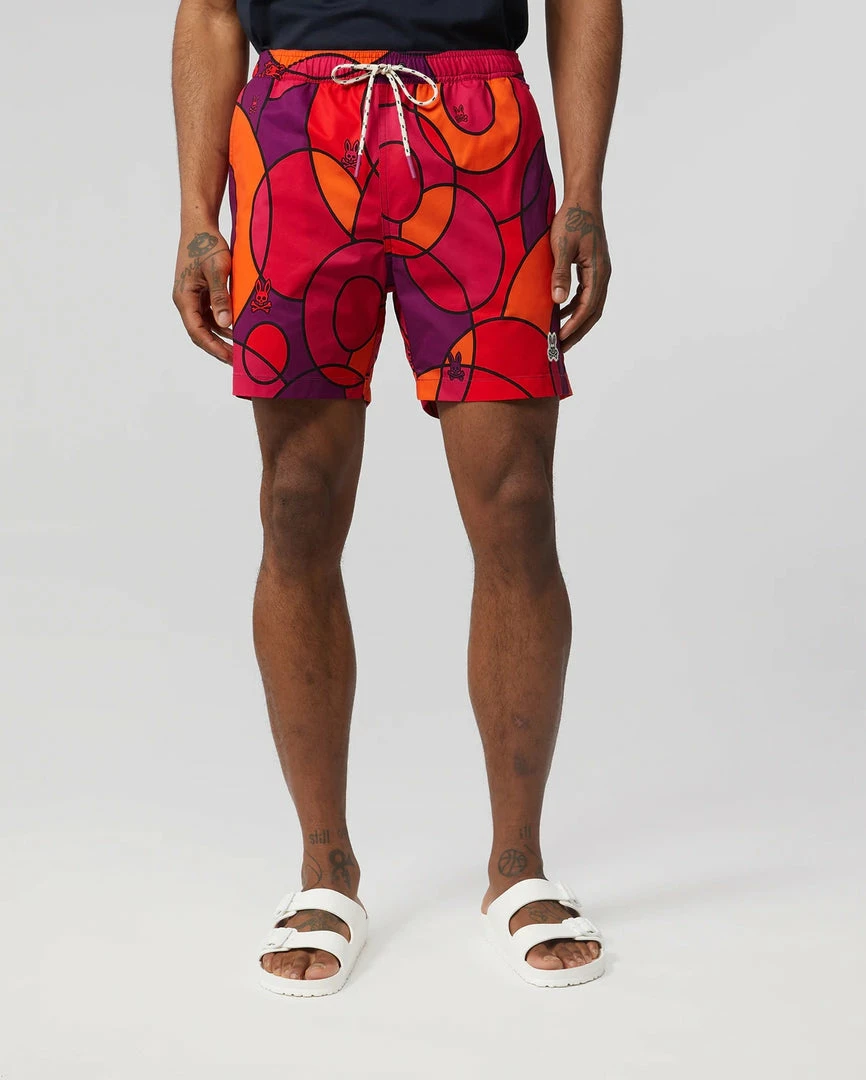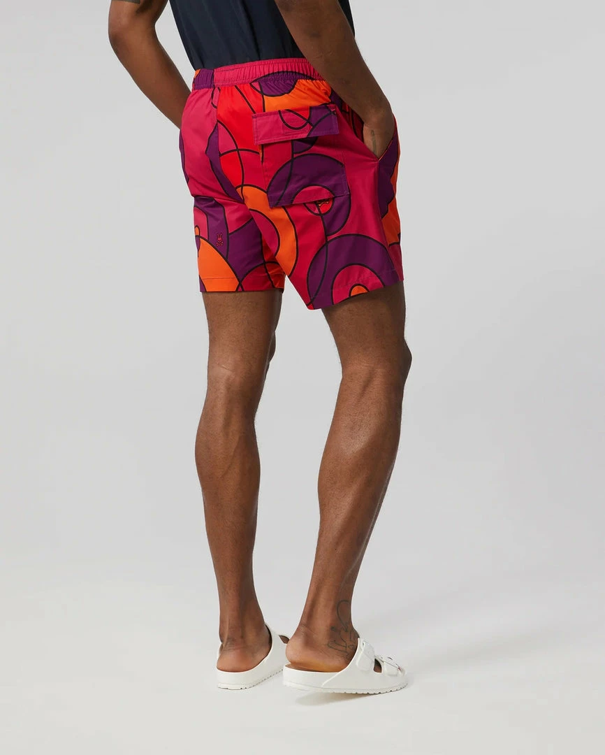 The mens Darwin swim shorts are sure to make waves for all the right reasons. Crafted from a lightweight, quick-drying polyester, these swim shorts are outfitted with a mesh lining and rubber-tipped drawstrings at the waist, for a comfortable wear. The Darwin swim shorts feature a bold pattern that combines vibrant colors and geometric shapes, making them impossible to miss whether worn in the water or on dry land.