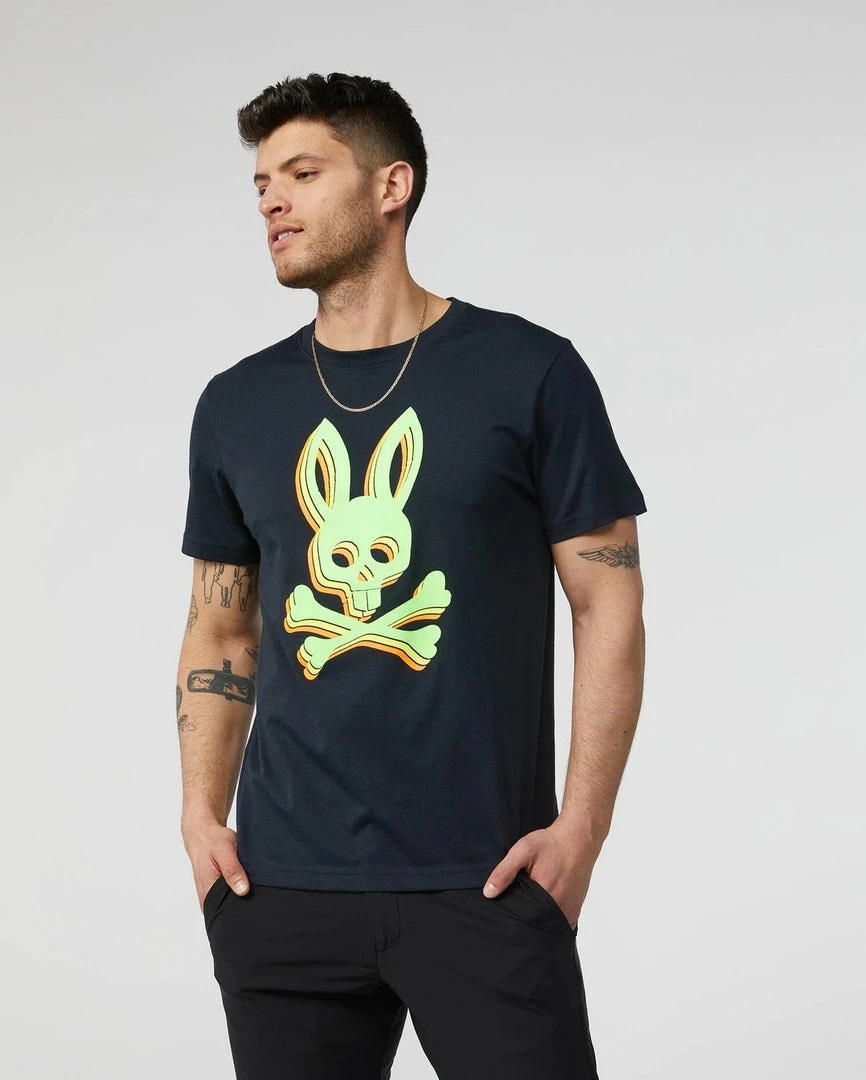 graphic tee. Crafted from only the softest Pima cotton, this graphic tee is cut a little bit longer than the average T-shirt, with a trim fit that hits the sweet spot between classic and slim. Taped seams in the shoulders and a ribbed collar ensure it never loses that perfect shape. The Henton graphic tee features a vibrant Psycho Bunny graphic on the chest, offering an expressive pop of color that’s sure to stand apart.