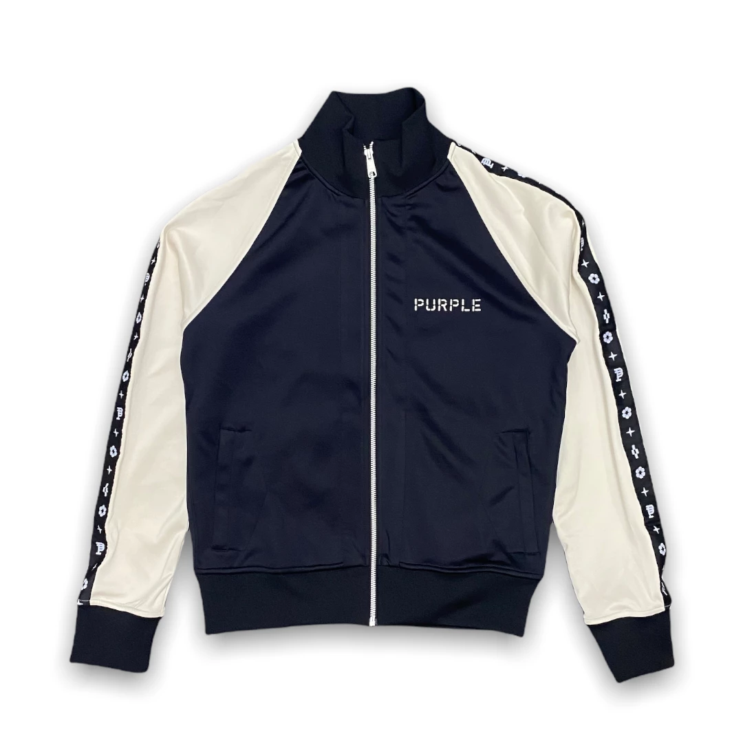 Purple Brand ( Black/cream Monogram Raglan Track Jacket)