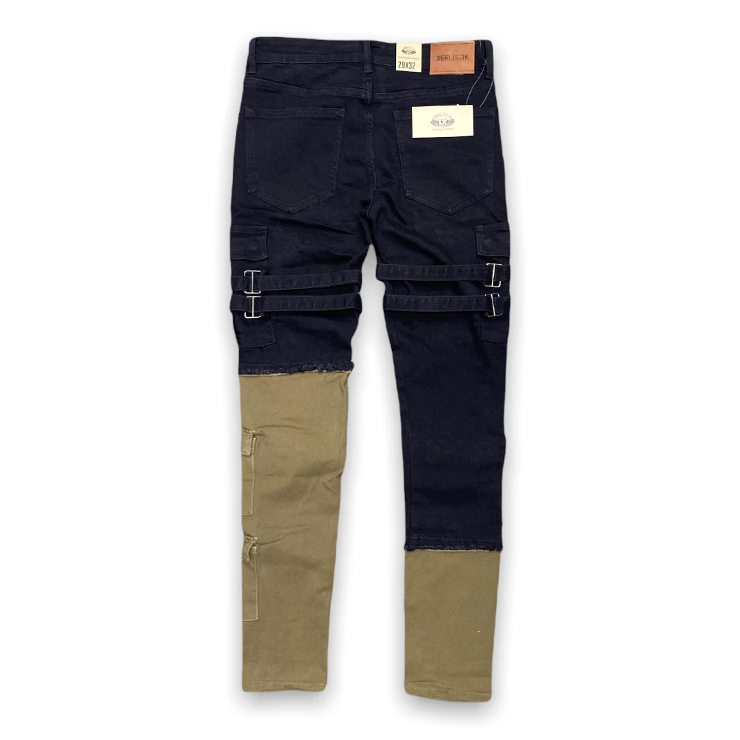 Reelistik nyc (black/Tan split strap super skinny cargo jean 4131-4)