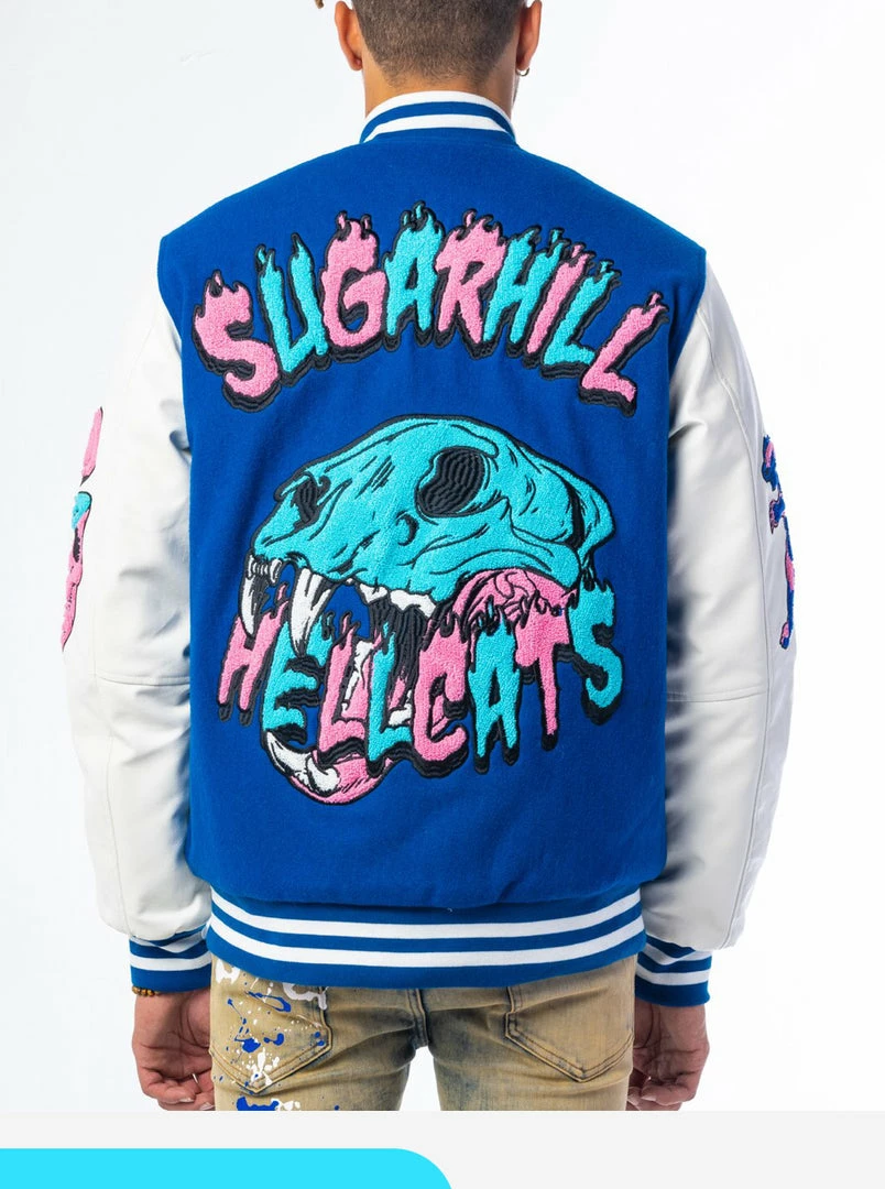 – SUGARHILL’S FIRST VARSITY JACKET DESIGN WITH AN OVERLAP COLLAR STYLE